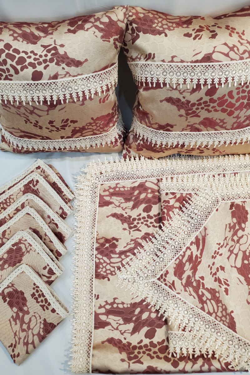 Праздничная скатерть с тигровым принтом, кружевной отделкой 110*200 + салфетка на середину стола размер 40*1000 + 6 салфетки размером 32*29. + 2 подушки (наволочки). Нарядная скатерть украсит ваш дом и может быть хорошим подарком для близких и друзей. Упакован в праздничный мешок с кружевом.