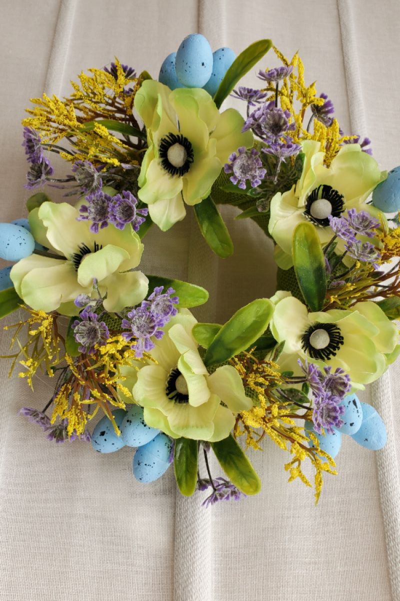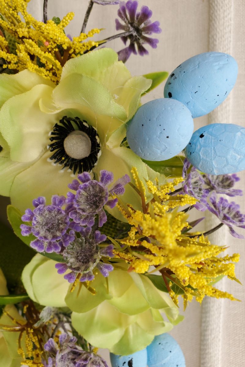 Пасхальная композиция с весенними цветами зеленью(символ весны, возрождения), колосками (благосостояние в доме), яйцами (символ пасхи), подставка с дерева (долголетие и крепкое здоровье) - украсит ваш дом и подарит надежду на все хорошее.