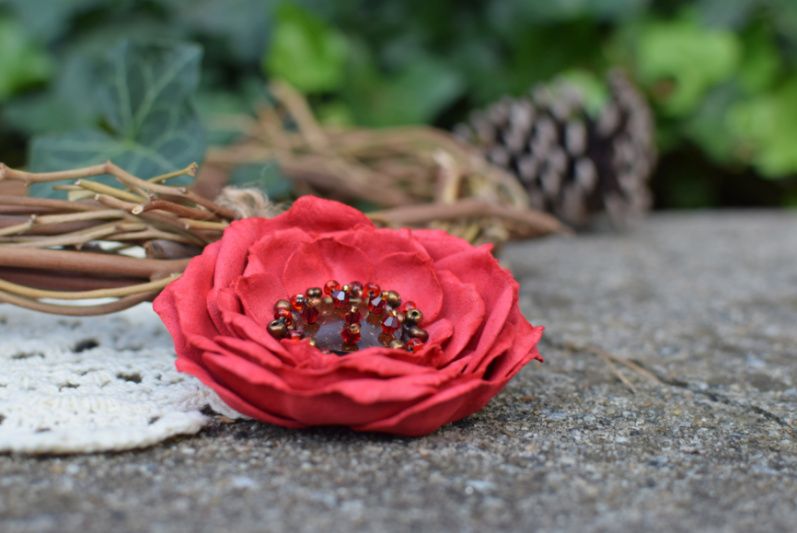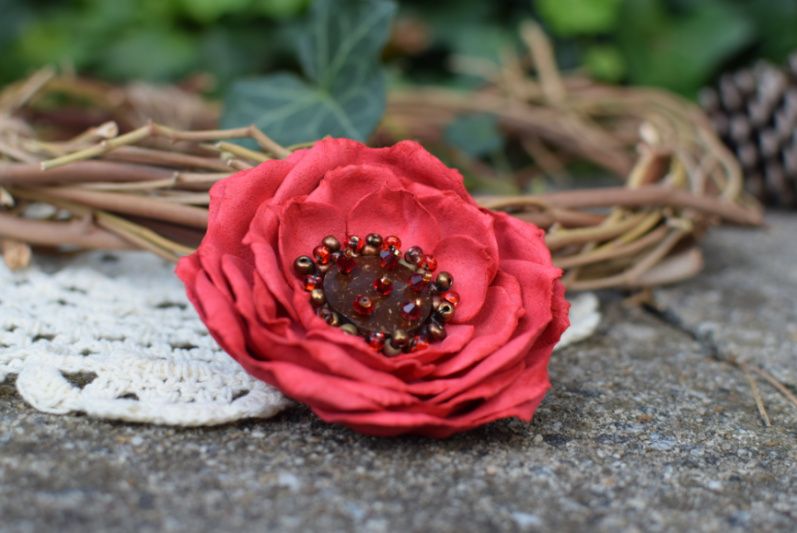 Цветок изготовлена из фоамирану и фатина расшитая различными каминьцямы и бисером. Брошь станет прекрасным дополнением к вашей одежде или эксклюзивным подарком на любой праздник. Благодаря универсальному креплению цветок можно зацепить и в волосы и как брошь.