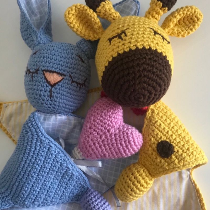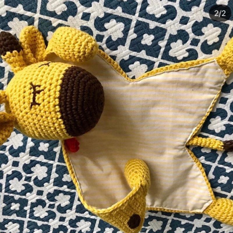 Сплюшка жирафик – игрушка ручной работы связанная крючком, для изготовления использовались натуральные нитки, наполнитель голова и ножки – синтепух, тканевые вставки 100% хлопок, нет ни каких опасных деталей.