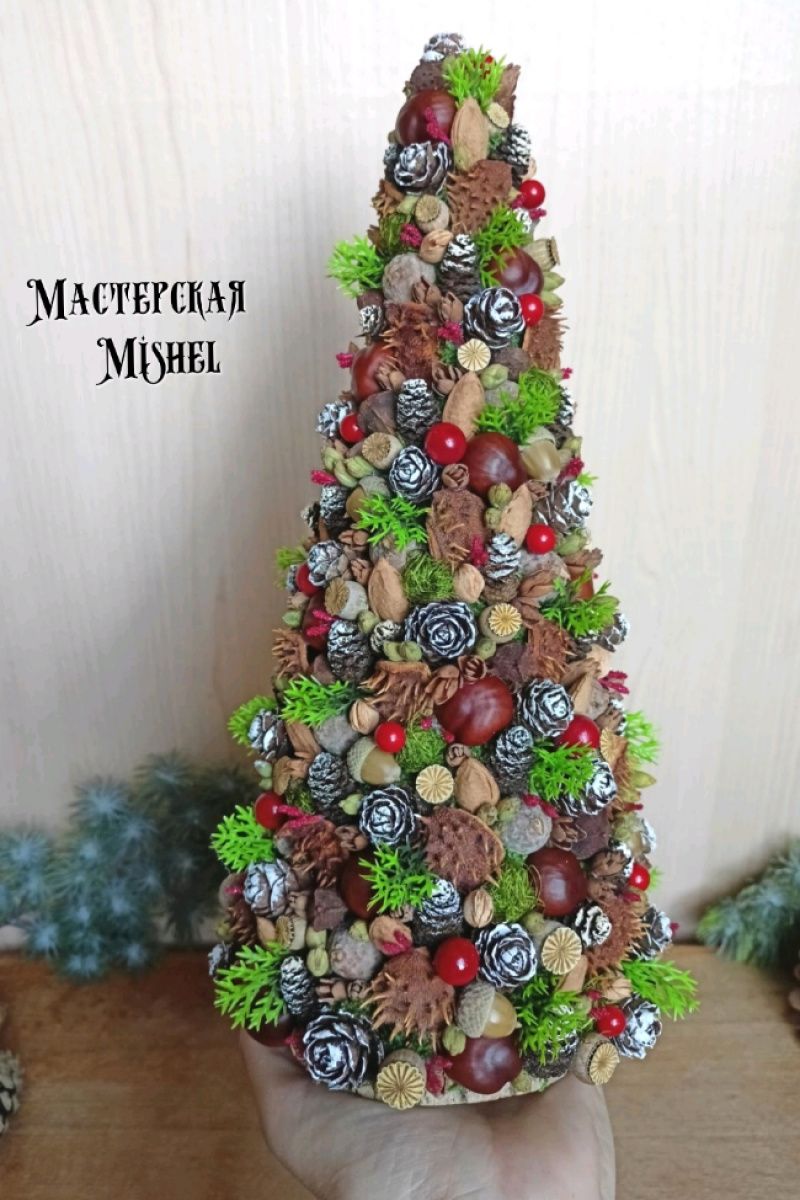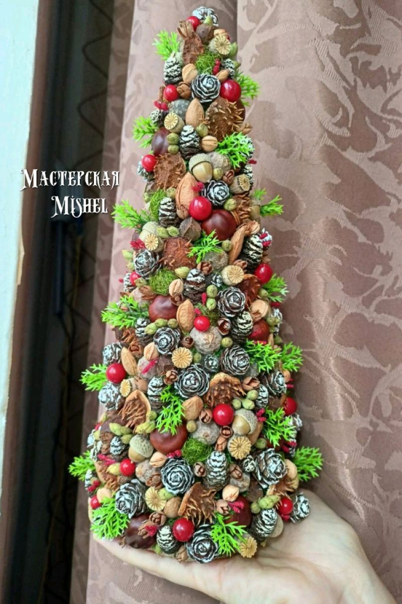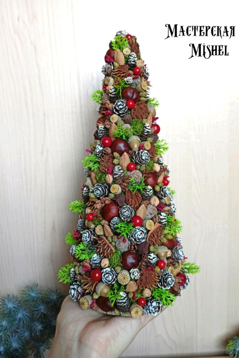 Эко ёлочка на деревянном спиле. Сделана полностью из природных материалов с добавлением иск. хвои, ягодок, тычинок.