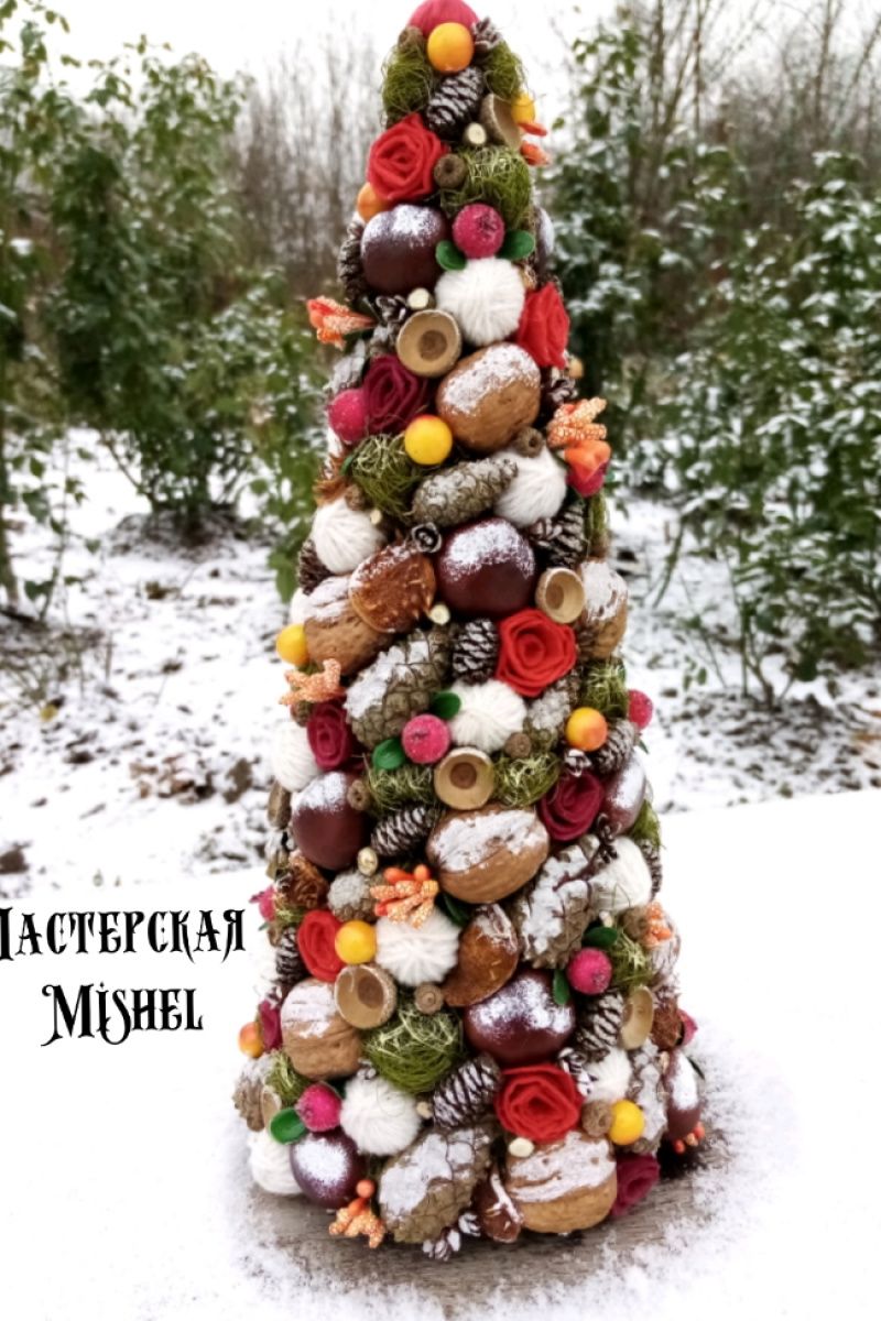 Многокомпонентная елочка в классическом стиле. На деревянном спиле. Задекорирована природными материалами и декоративными элементами. Очень нарядная и праздничная.