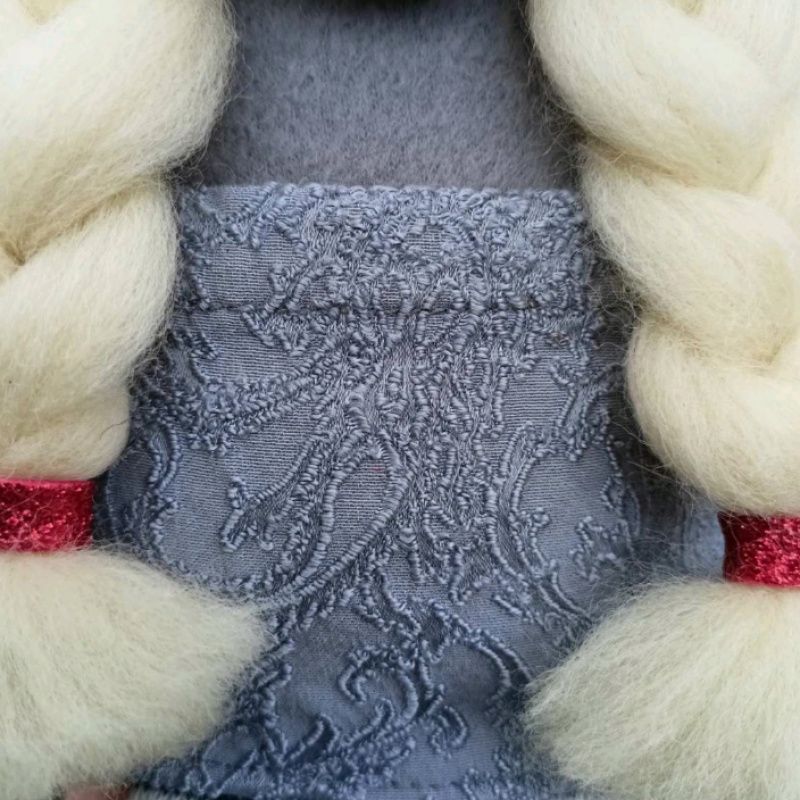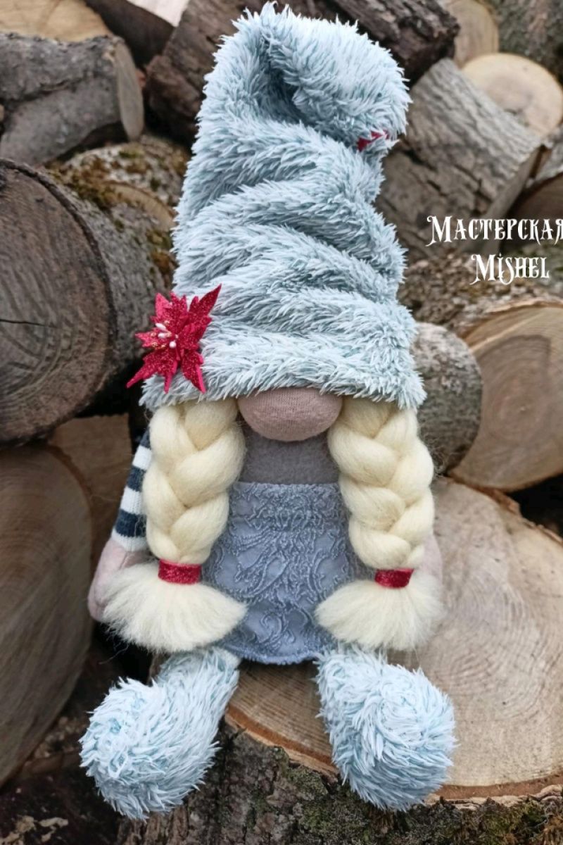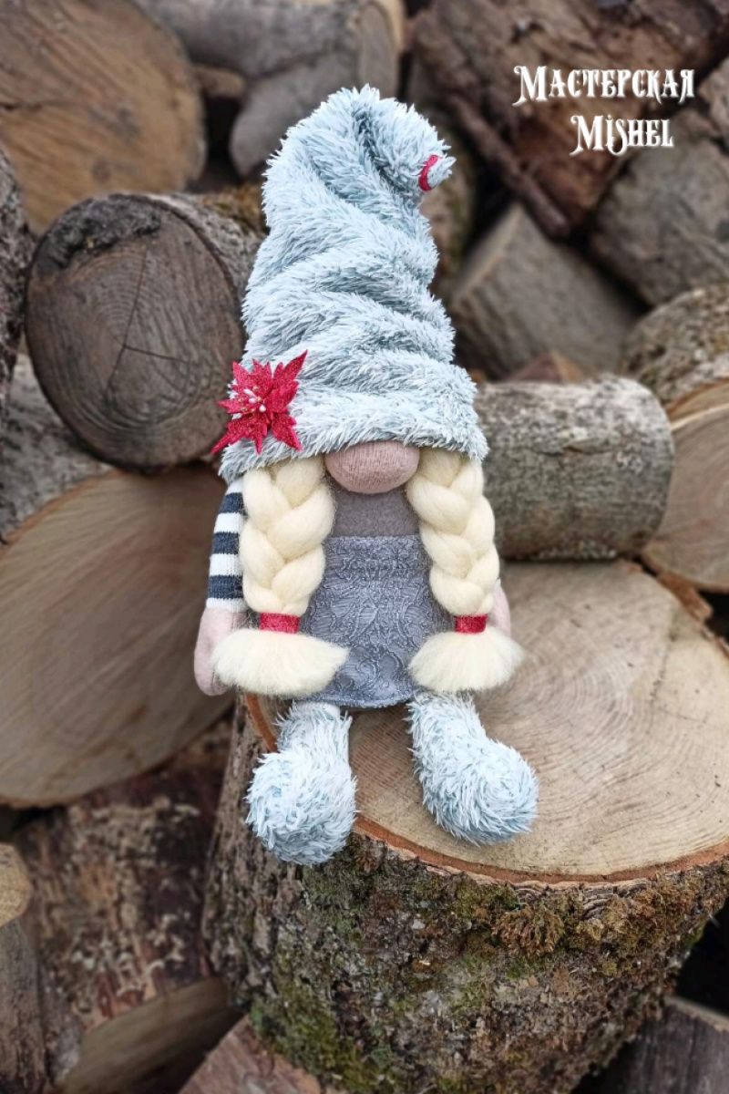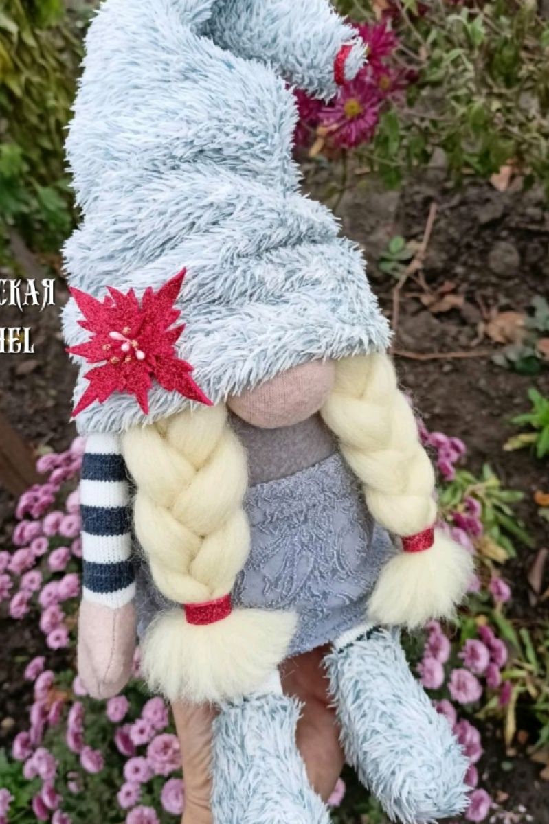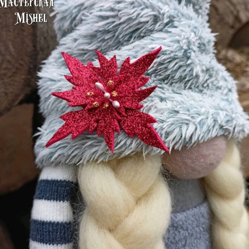 Скандинавский гном девочка в пушистой шапочке и пушистых сапожках. Пуансетия на шапке также ручная работа.