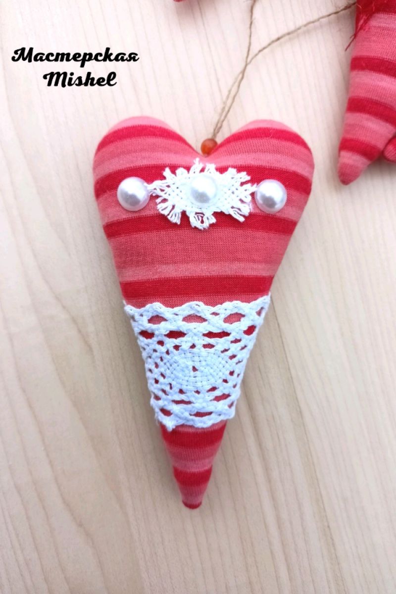 Текстильное сердечко Тильда с декором. На верёвочке.