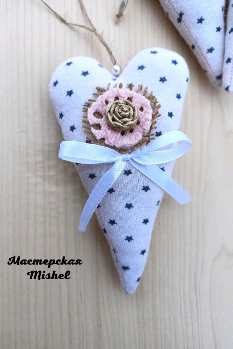 Текстильное сердечко Тильда с декором. На верёвочке.