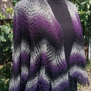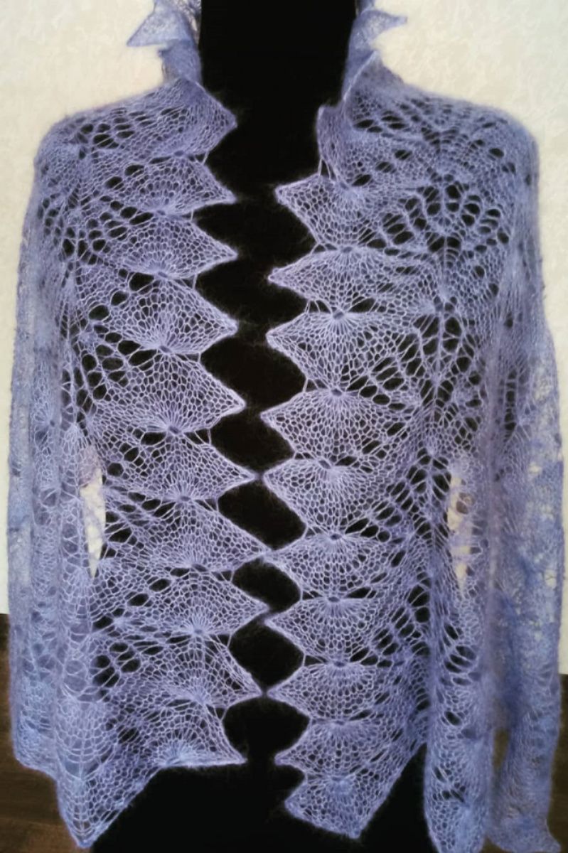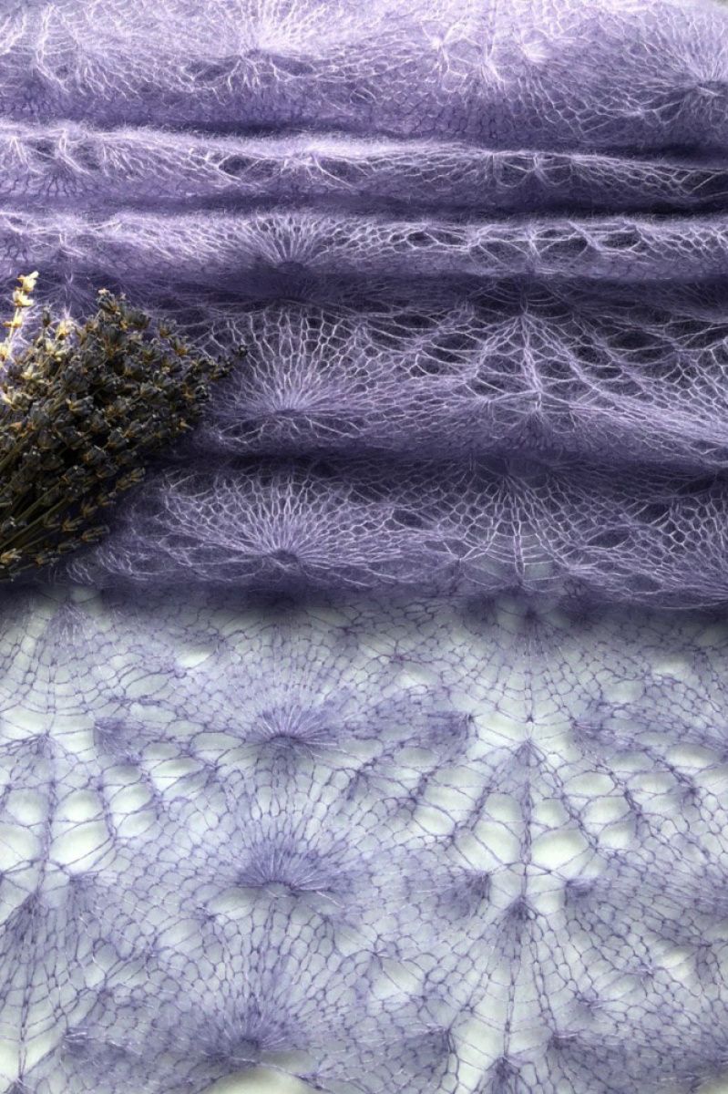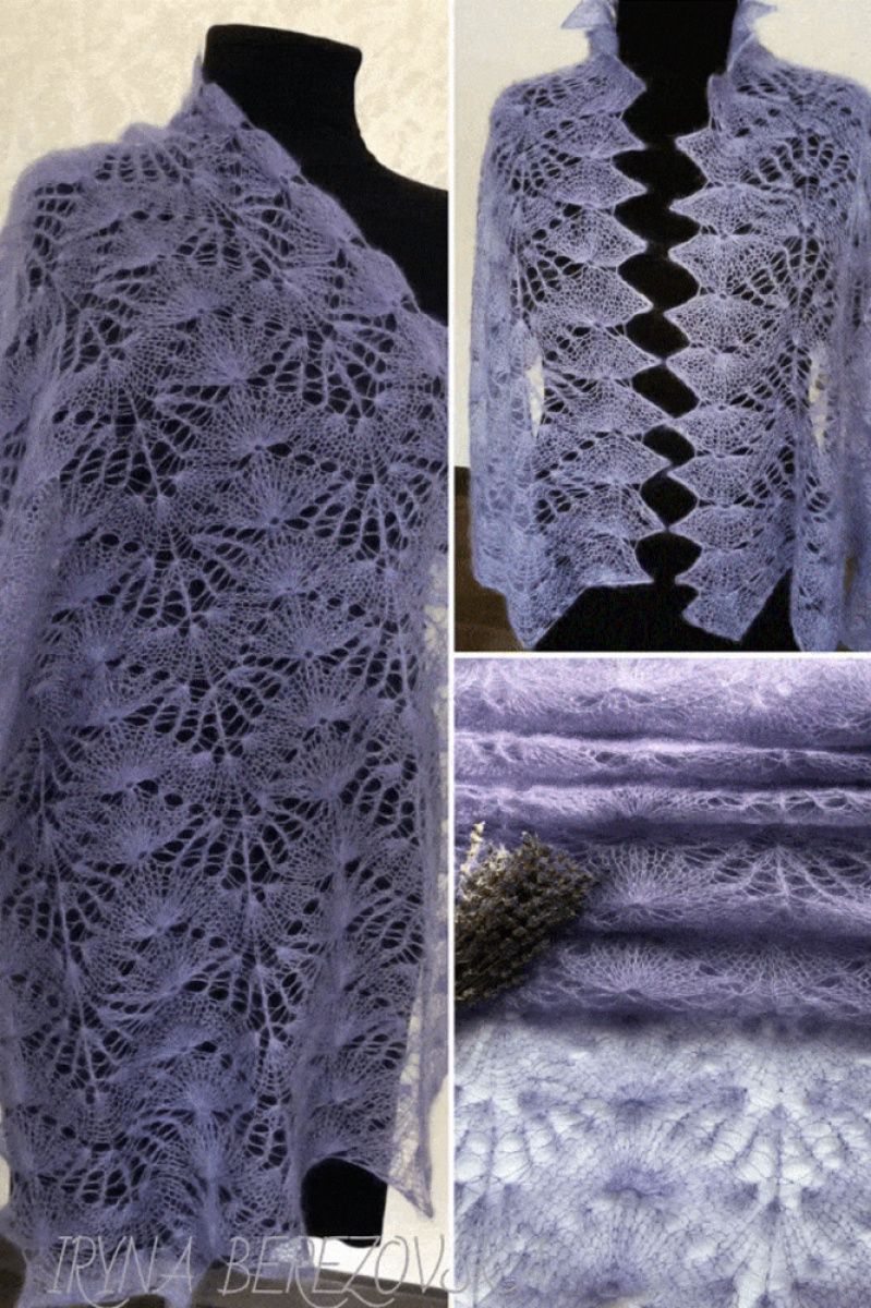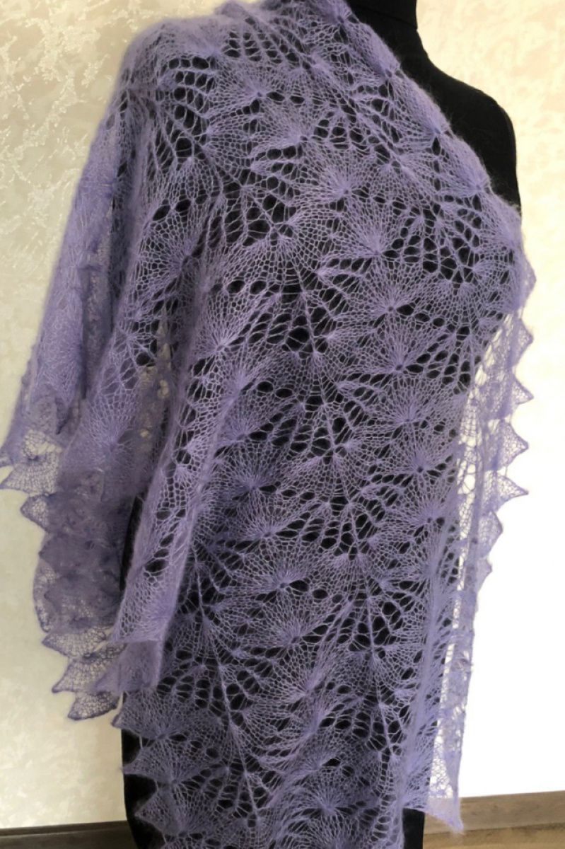 Ажурный палантин лавандового цвета связан из пряжи премиум класса, 100% натуральный состав.