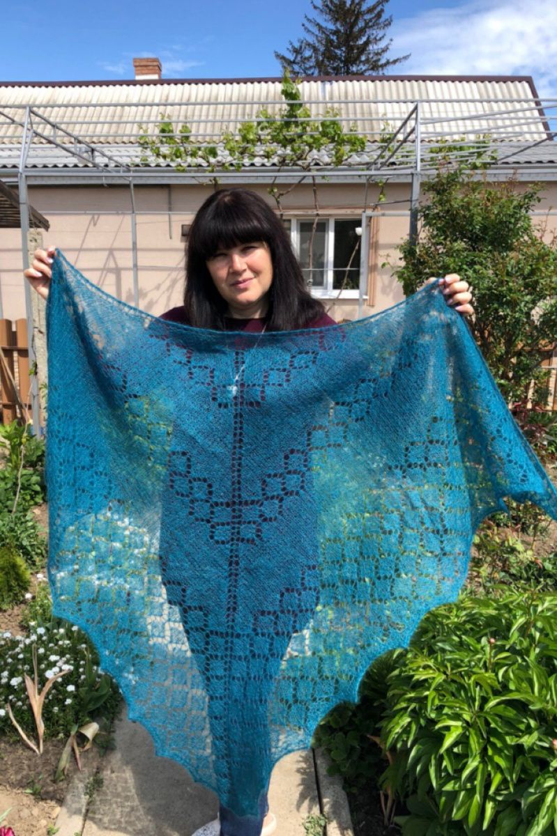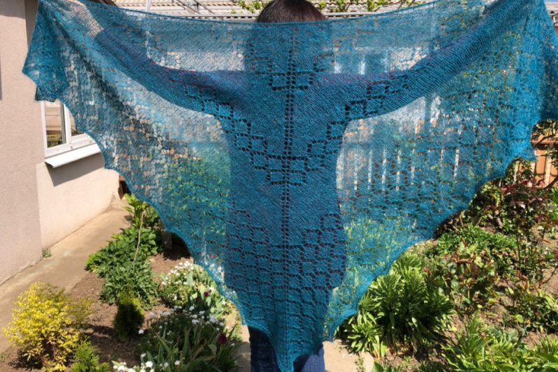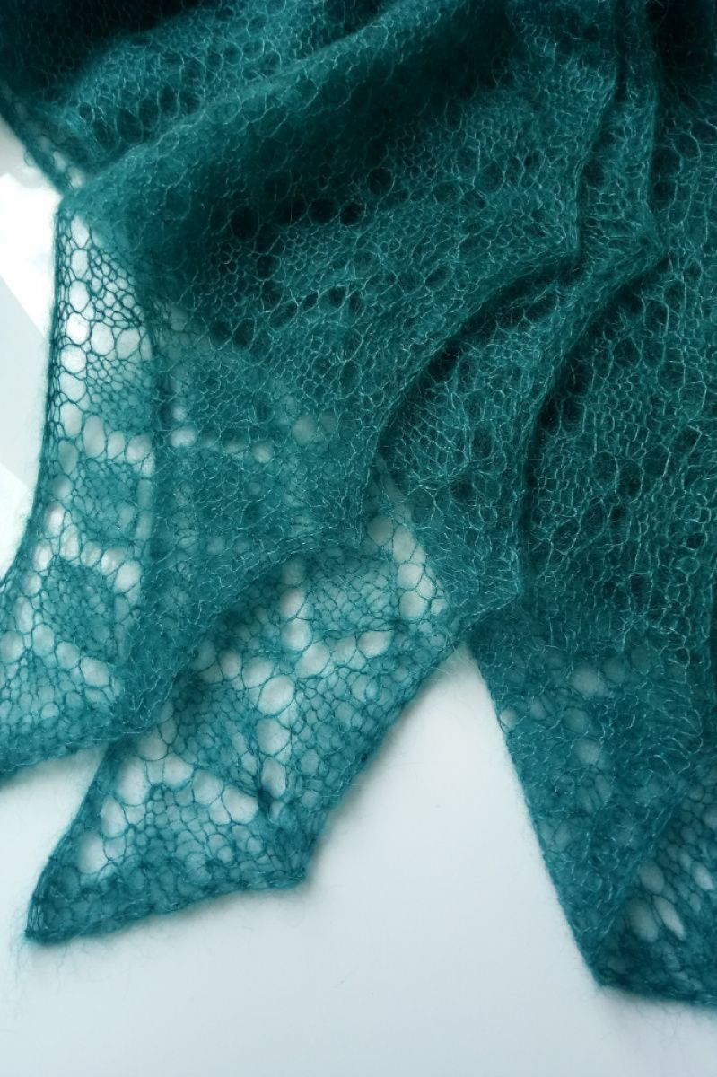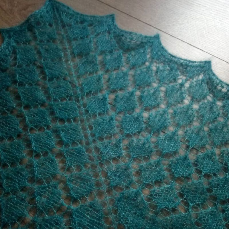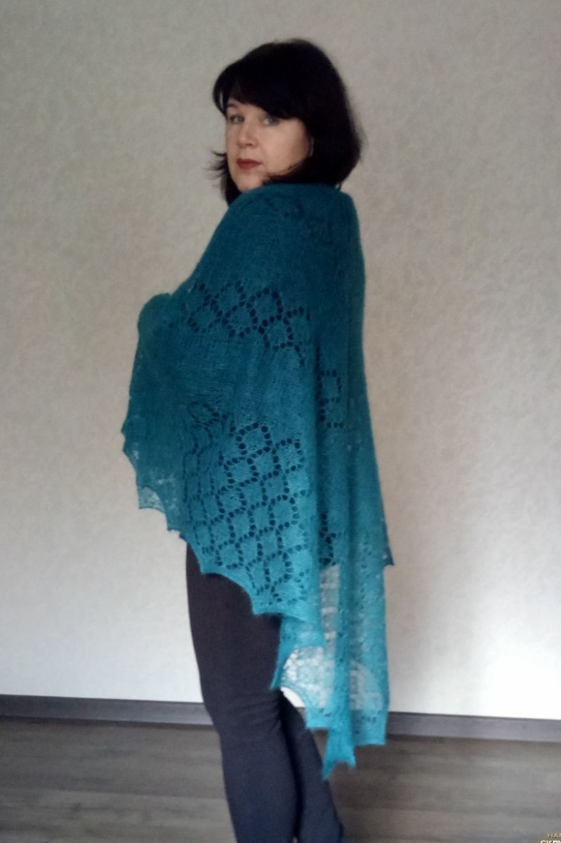 Шаль связана из норвежского нежнейшего кидмохера на шелке( 70% кидмохер, 30% шелк). Получилась внушительных размеров. Легкая, воздушная....