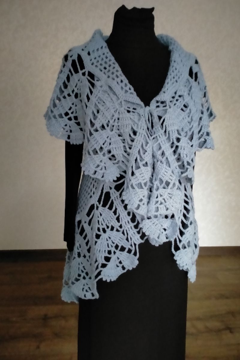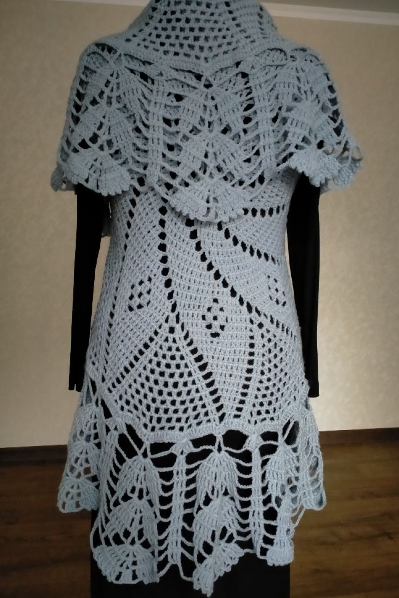 Ажурный, круглый формы жилет. Связан из толстой пряжи ( шерсть и акрил).
