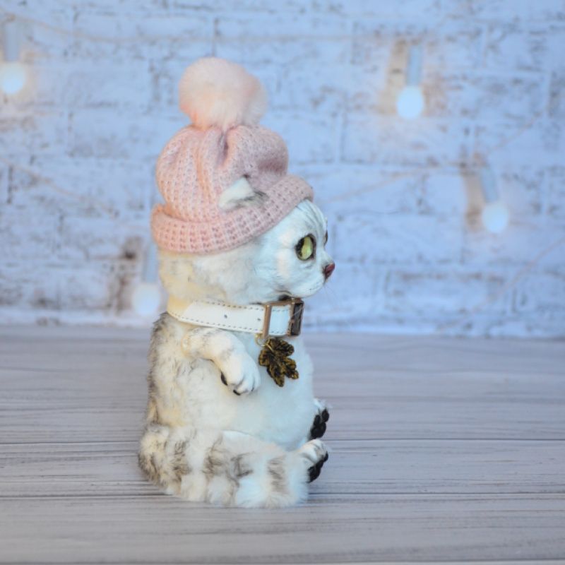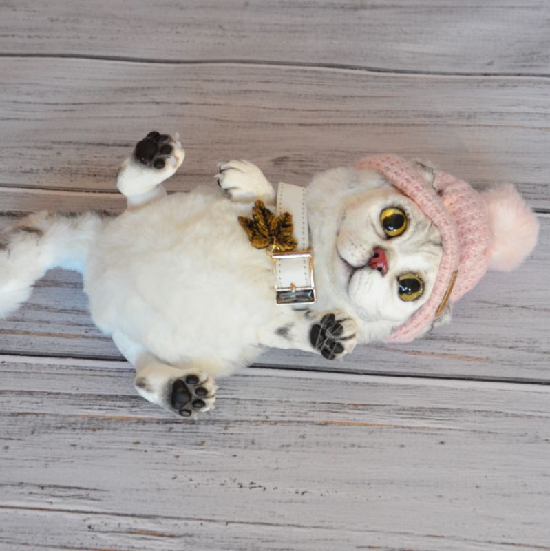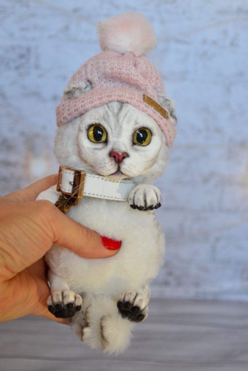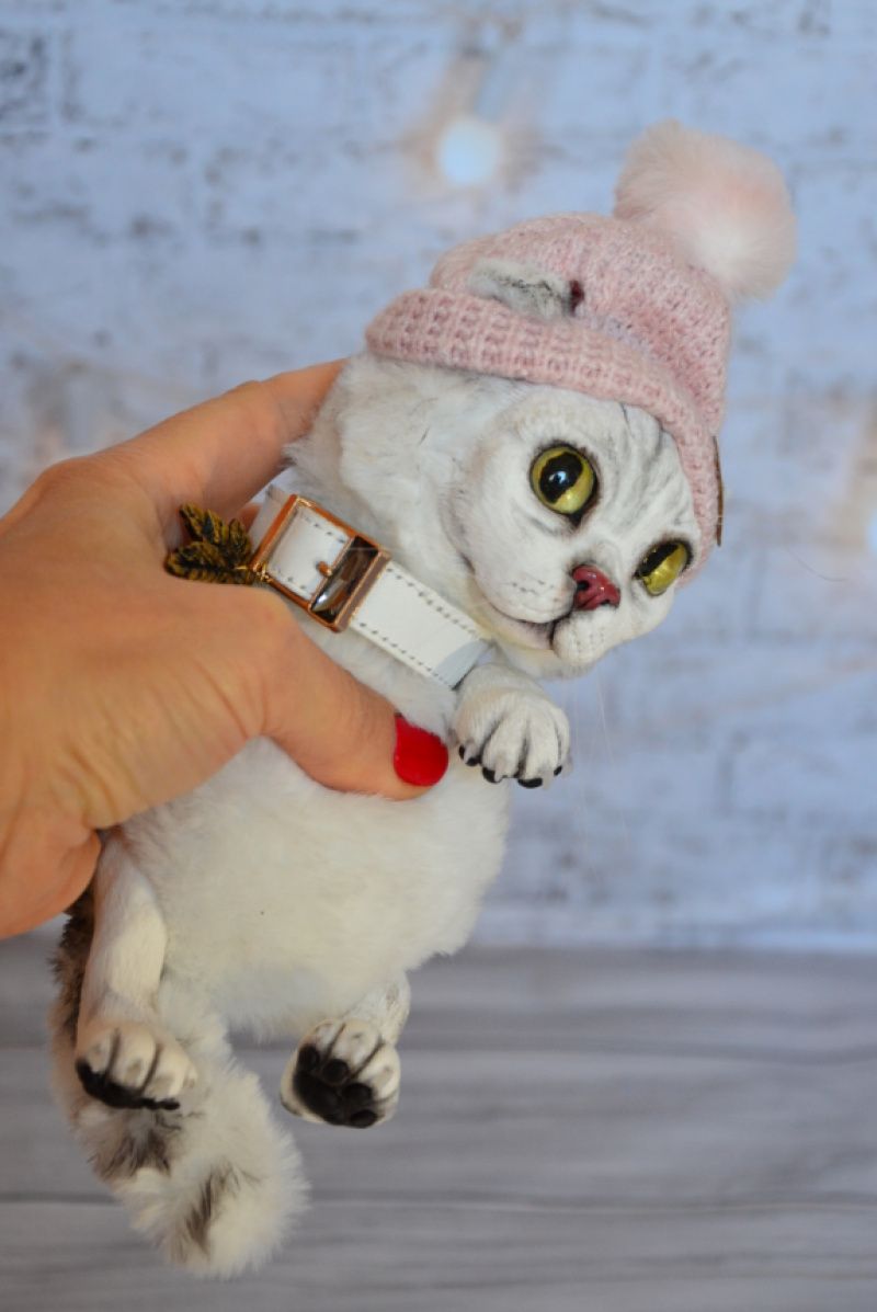 Портретная игрушка в смешанной технике создана по фотографиям кошечки. Мордочка, лапки из полимерной глины. Тело мягко-набивное, утяжелено минеральным гранулятом. Ушки и хвостик армированы. Рост 15 см
