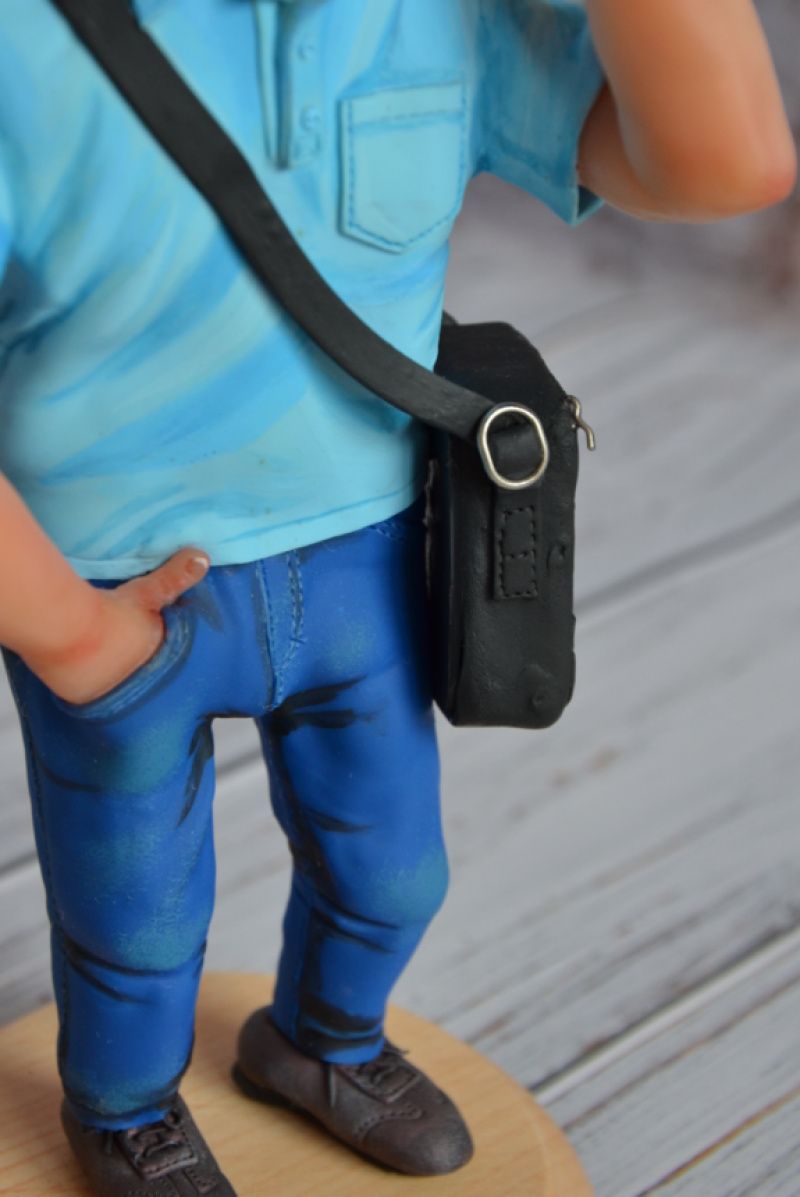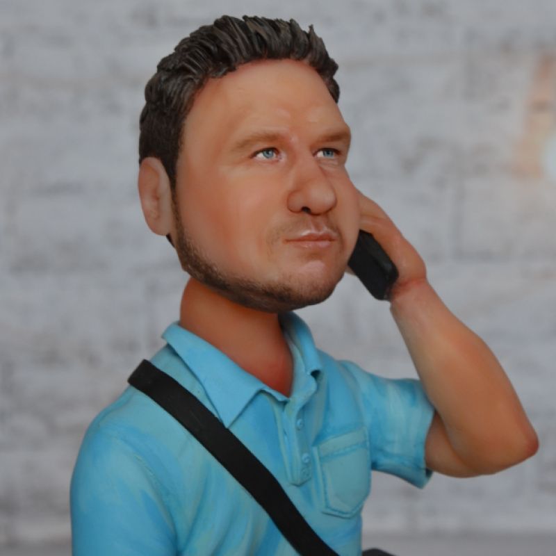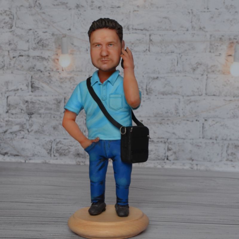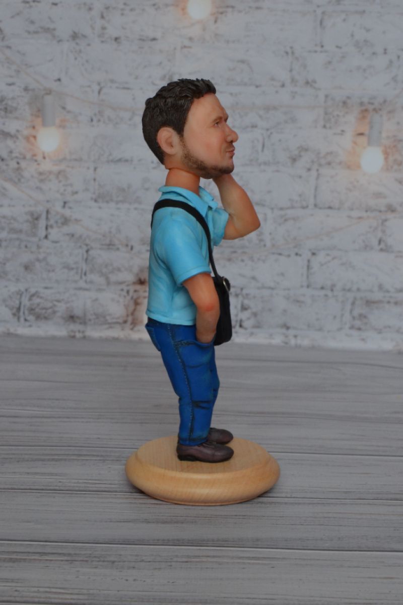 Портретная кукла шарж выполнена по фотографии. Голова поворотная на шарнирном соединении. Высота 28 см.