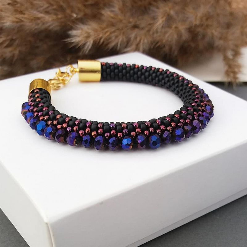 Изысканный браслет из японского бисера Toho и чешских хрустальных бусин. Браслет очень женственный и утонченный. Подойдет на запястье 14,5-15,5 см При необходимости -можно еще немного увеличить размер. Качественная фурнитура из латуни и нержавеющей стали. Таким браслетом можно дополнить вечерний образ, придать ему стиля и немного ектравагантности. Для утонченных натур, но не робкого десятка! Рекомендации по уходу - избегайте попадания косметических средств (духи, крем,). - старайтесь не мочить изделие. - держите Ваши украшения в недоступном для детей и животных месте. - не храните свои украшения под прямыми солнечными лучами.