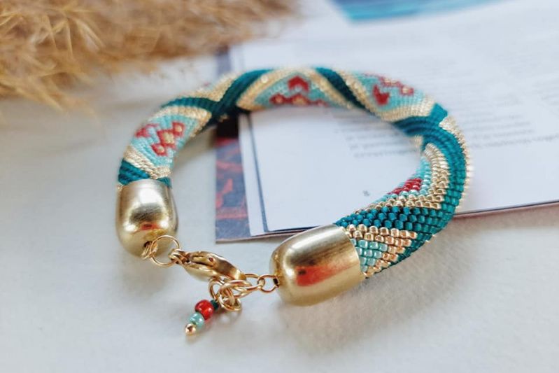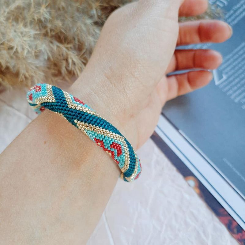 Яркий и экзотический браслет с самого мелкого, качественного японского бисера Toho №15 Качественная фурнитура из латуни и нержавеющей стали. Удобная и практичная застежка в виде карабина Подойдет на запястье от 16 см. Осторожно! Может стать излюбленным украшением !!!