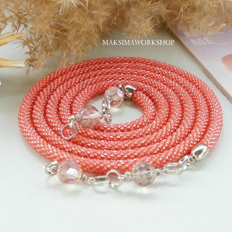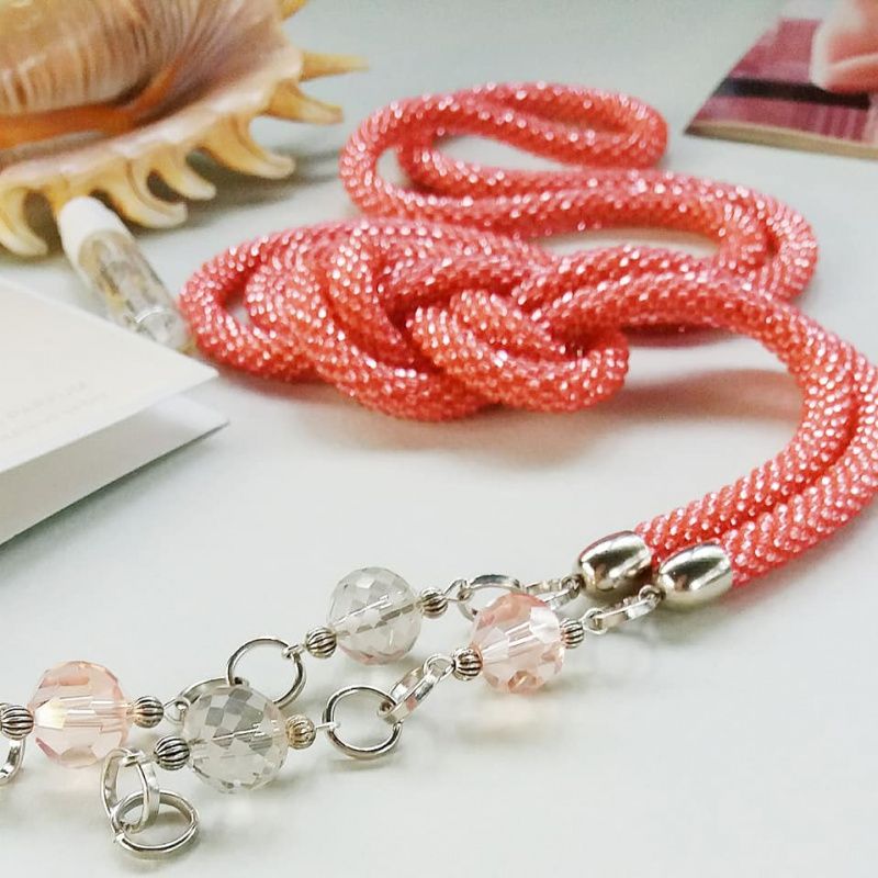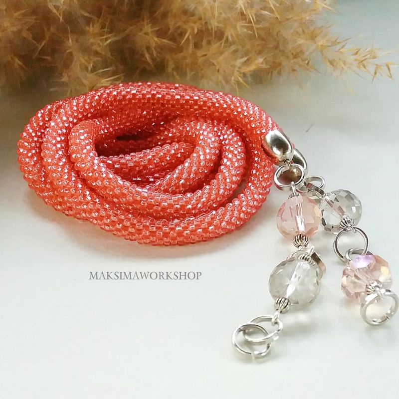 Лариат из чешского бисера красивого Кораллового цвета! Подвески выполнены из хрустальных чешских бусин. Длина с подвесками 148 см. Ярко, но в то же время лаконично, элегантно и очень женственно. Выглядит Лариат стильно, выразительно и современно. Лариат универсальная украшение, его одевают как тонкий шарф или краватку.Або как браслет в несколько оборотов в руке.