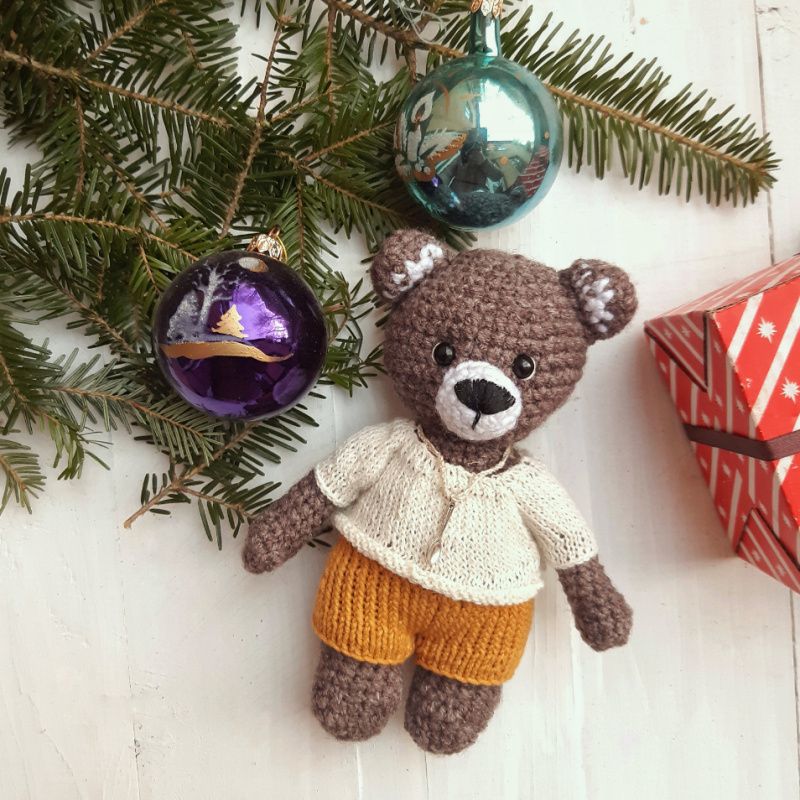 Авторская игрушка ручной работы Мишка Зяма связана с акриловой пряжи. Одежду можно снять. Будет отличным подарком для взрослых и детей.