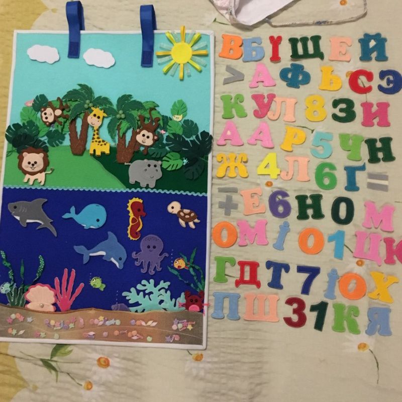Развивающий коврик с элементами математики и чтения для детей от 2 лет. Все элементы съемные на липучке и крепятся в любом месте коврика (фото 3 коврик без съемных элементов). Тематику и героев можно подобрать по желанию. Коврик можно крепить к вертикальной поверхности (крепежные элементы на ваш выбор)