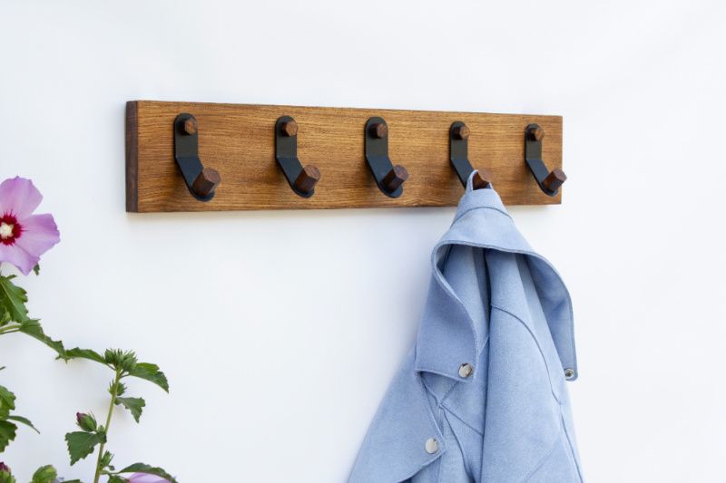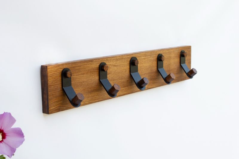Прихожая – очень важное помещение, которое с порога может многое рассказать о вашем доме. Интерьер прихожей может быть любым – скромным или, наоборот, роскошным. Но он всегда должен быть максимально удобным. Вешалка в прихожей играет очень важную роль, создавая необходимые условия не только для вас, но и для всех остальных членов семьи и гостей. Красивая и функциональная настенная полка с крючками Mini Bend поможет разумно и эстетически организовать место для вещей в прихожей, примерочной или гардеробной. Она занимает минимум места, что очень важно для обустройства комнат с ограниченным пространством. Изготовлена из натурального дерева. Деревянные вешалки. в прихожую наиболее распространены и пользуются наибольшим спросом.Их популярность объясняется тем, что они производятся из экологичного материала.Такая полка - это не только полезный аксессуар для дома, но и креативный элемент декора.Стандартные размеры полки: S - 56х10 см + 5 крючков 76х10 см + 7 крючков Крючки - гнутый металл Мы можем изготовить полку в любом размере (предварительно обсудив все детали) Покрытие: порошковое! , матовый черный, персиковый, золотой, кирпичный Дерево: ясень Цвет деревянной полки: натуральное дерево (покрытие прозрачным полуматовым лаком); лир, орех, палисандр (покрытый специальным цветным антисептиком и закреплен прозрачным полуматовым лаком). Крепление: к стене (дюбелям) Изготовлено в Украине.