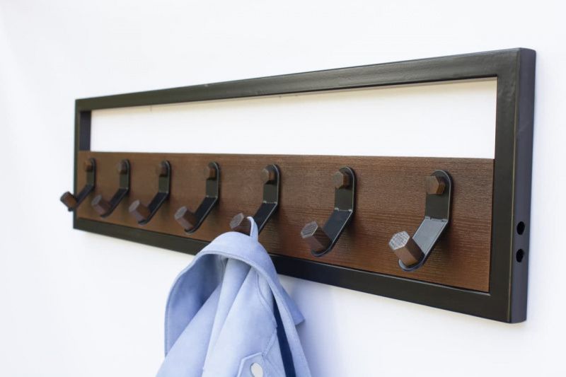 Хорошим решением для увеличения свободного места в комнате станет настенная полка для одежды. Большие и громоздкие переносные вешалки постепенно выходят из моды, а заменяют их современные более удобные приспособления. Настенная полка сэкономит место для более нужных вещей. Подумав об этом, команда mda-store изготовила отличную настенную полку с крючками Bend. Она может превратить пустую стену в полезное и волшебное пространство, где ваши пальто, сумки, зонтики будут организованы и всегда под рукой. Благодаря четким линиям и интересному внешнему виду эта вешалка придаст вашей прихожей современные акценты. Универсальный и современный дизайн по комбинации металла и натурального дерева позволяет использовать его в самых разных интерьерных решениях, поможет создать уникальный домашний стиль. Стандартные размеры полки: S – 60х20 см + 5 крючков M –80х20 см + 7 крючков Металл 2х2 см. Крючки – гнутый металл. Мы можем изготовить полку в любом размере (предварительно обсудив все детали). Покрытие: порошковое! Цвета: без окрашивания (металл очищен от ржавчины и окрашен прозрачным лаком); белый, серый, черный, матовый черный, персиковый, золотой, кирпичный. Дерево: ясень. Цвет деревянной полки: натуральное дерево (покрытие прозрачным полуматовым лаком); белый цвет, орех, палисандр (покрытый специальным цветным антисептиком и закреплены прозрачным полуматовым лаком). Крепление: к стене (дюбелям) Изготовлено в Украине.