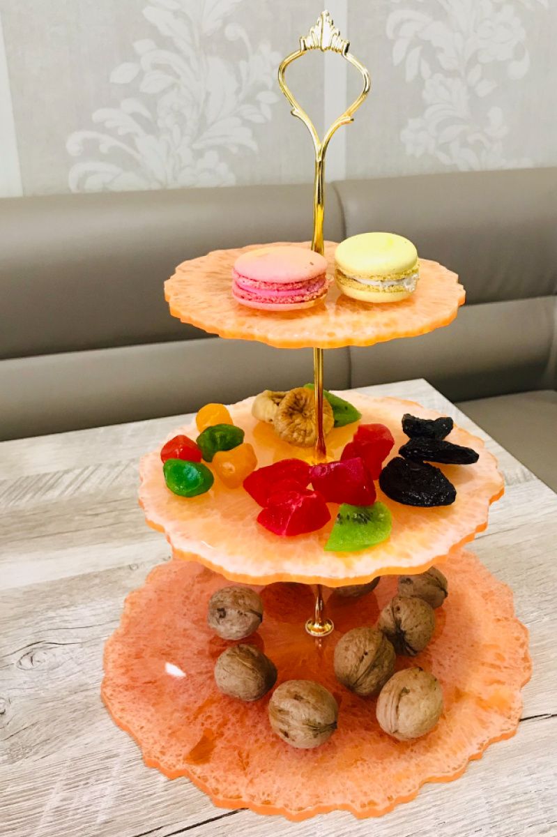 Конфетница для дома, украсит Ваш стол. Выполненная в 3 яруса, фурнитура железо, основа эпоксидной смолы