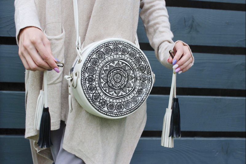 Не секрет, что новая Маленькая Кожаная Сумка На Лето - это слабость каждой женщины, и удовлетворить эту прихоть лучше с memanu! Потому что мы знаем, как делать женщин счастливыми! А с этой уникальной сумкой, расписанной вручную, вы будете выглядеть абсолютно индивидуально и получите много невероятных комплиментов. Проверено больш чем 480-ми нашими клиентками! Рисунок на сумку "Mehendi" нанесен без использования трафаретов, поэтому Вы можете быть уверены в уникальности своего изделия! Для нанесения росписи мы используем специальную смесь крепкого и водонепроницаемой краски, а для полной защиты рисунке от внешних воздействий закрепляем его двумя слоями финишного покрытия. Кисти бахромы съемные. Благодаря этому вы можете экспериментировать и носить их вместе с другими аксессуарами или одеждой, создавать новые стильные образы. Сумка закрывается на металлическую молнию, имеет прочный каркас и прекрасно держит форму. Плечевой ремень регулируется и может быть закреплен с помощью пряжки на нужной высоте. Модель отлично смотрится на плечи или кроссбод. Внутри сумка имеет прочную текстильную подкладку и большой карман на молнии для телефона, ключей, помады или других мелочей. РАЗМЕР: диаметр - 20 см ширина - 8 см длина ремня регулируется между 100 - 150см длина самой длинной кисти - 20 см ВАЖНО: Сумка может быть в 2-х комплектациях: с кистями бахромой - 3300.00 UAH БЕЗ кисти бахромы - 2900.00 UAH Изделие может быть персонализировано путем ручного нанесения нужного надписи. Наша художница напишет ваше имя или созвездия вашего знака зодиака. Пожалуйста, дайте нам знать, если вы хотите, чтобы персонализация была в определенном месте. Если это не указано, надпись будет расположен справа внизу. Тщательно проверьте, что вы вводите, потому что это не может быть изменено после обработки вашего заказа. Цена персонализации 250.00 UAH. Данные для персонализации укажите, пожалуйста, в комментарии к заказу. Заказ наложенным платежом отправляем на следующий день после оплаты аванса 150.00 UAH на карту! Спасибо за понимание! Если у Вас возникли вопросы, пожалуйста, не стесняйтесь обращаться ко мне!