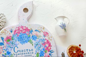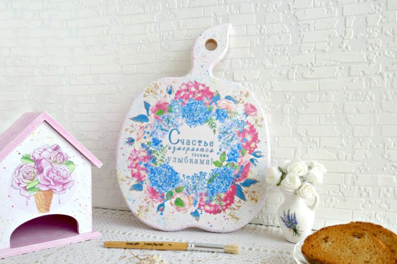 Одна сторона доски художественное панно,обратная сторона доски, готова для резки продуктов.