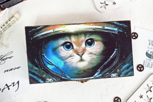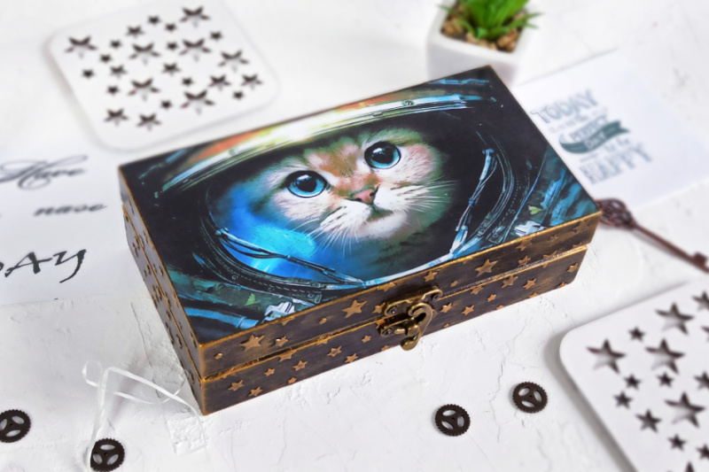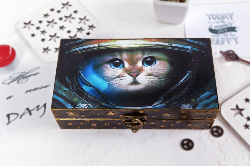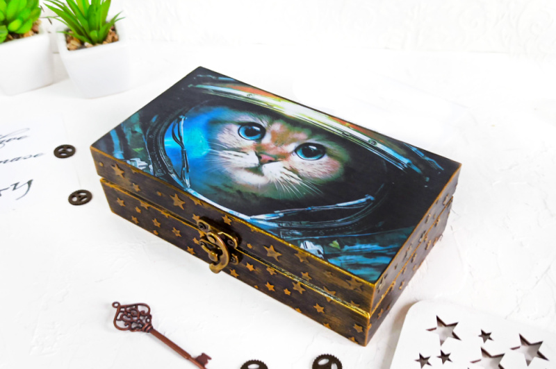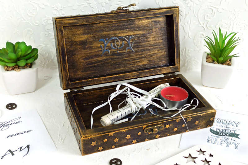 Работа выполнена в нежном голубом цвете с объемным рисунком по бокам.