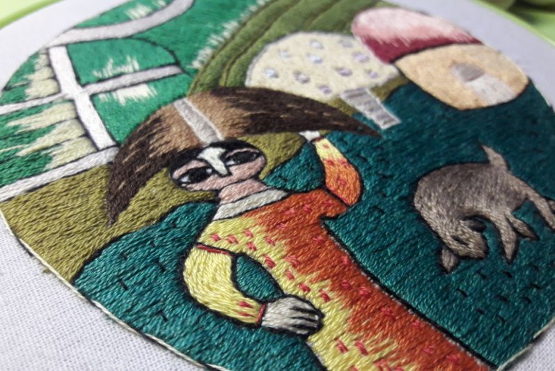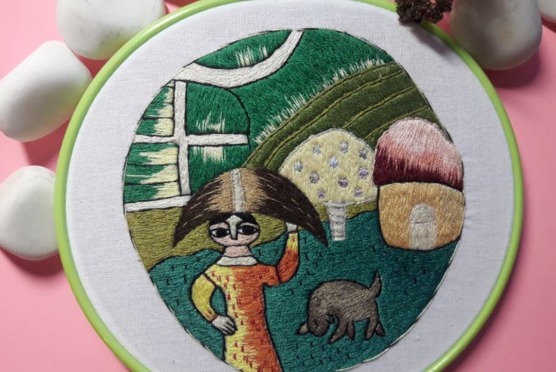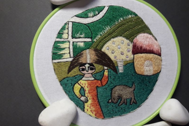 Продается вышитая гладью очень колоритная картина в индийском стиле Оформлена в пяльце Диаметр 16 см Вышиваем на заказ художественной гладью картины
