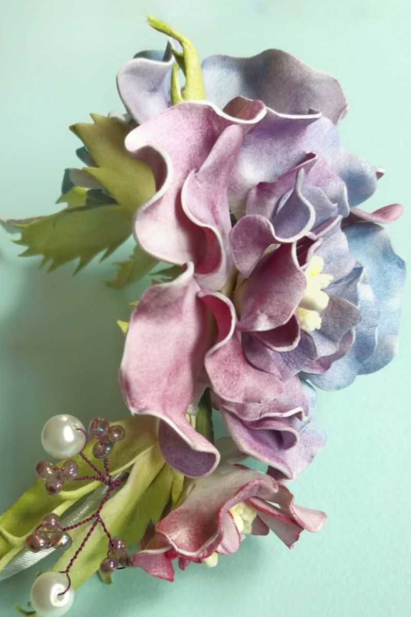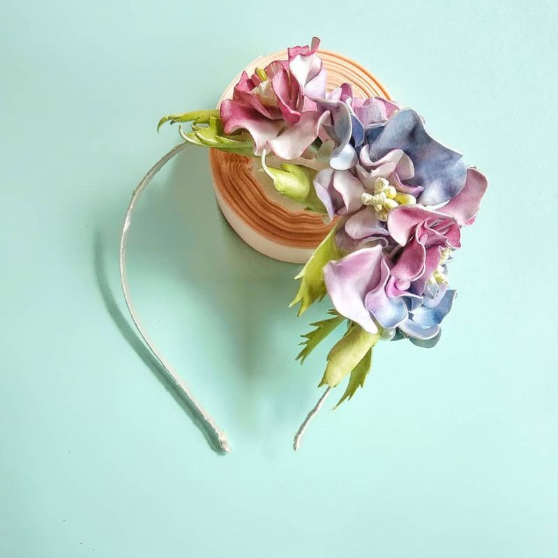 Обруч с радужными цветами - очень оригинальный, яркий, но в то же время нежный.