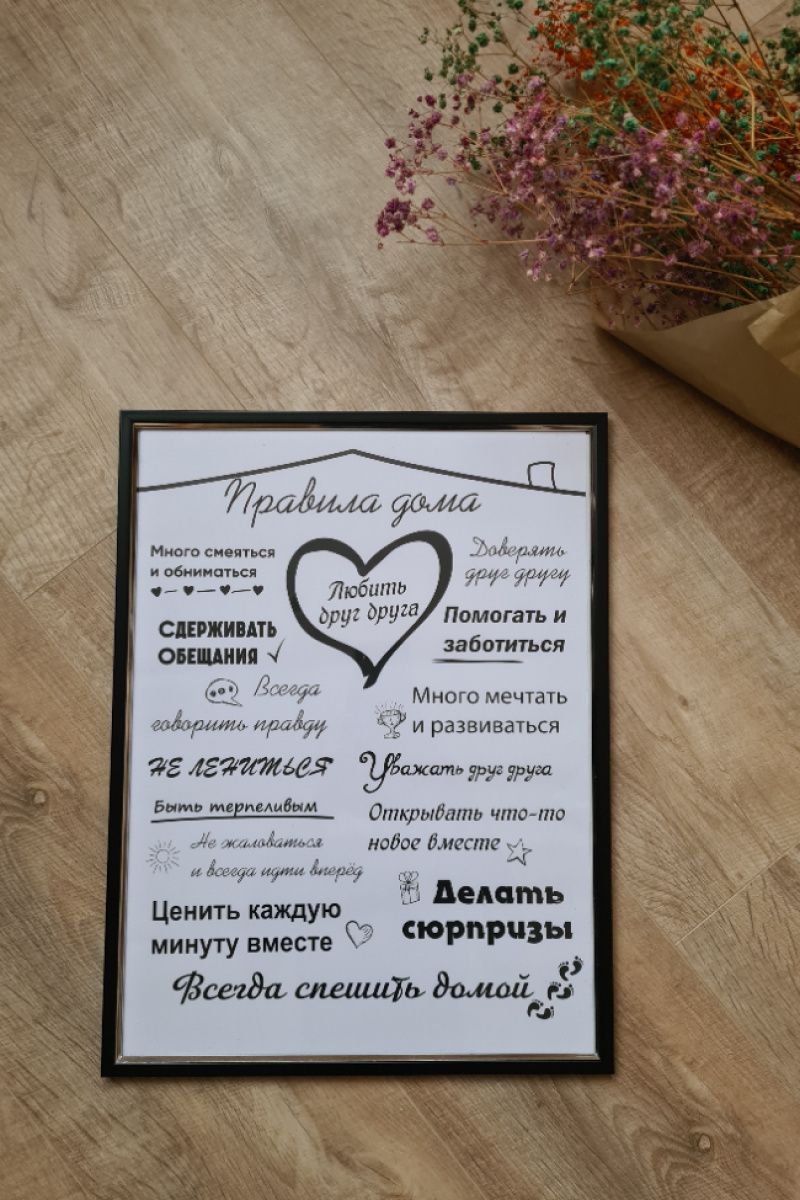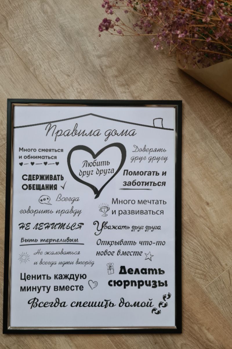 Правила семьи формата А3. Отличный декор для уюта и дома. Станет отличным подарком на праздники. Правила можете написать сами, я их хорошо оформлю. Также индивидуально подберем рамочку