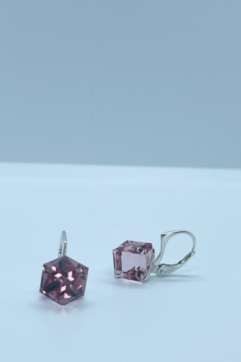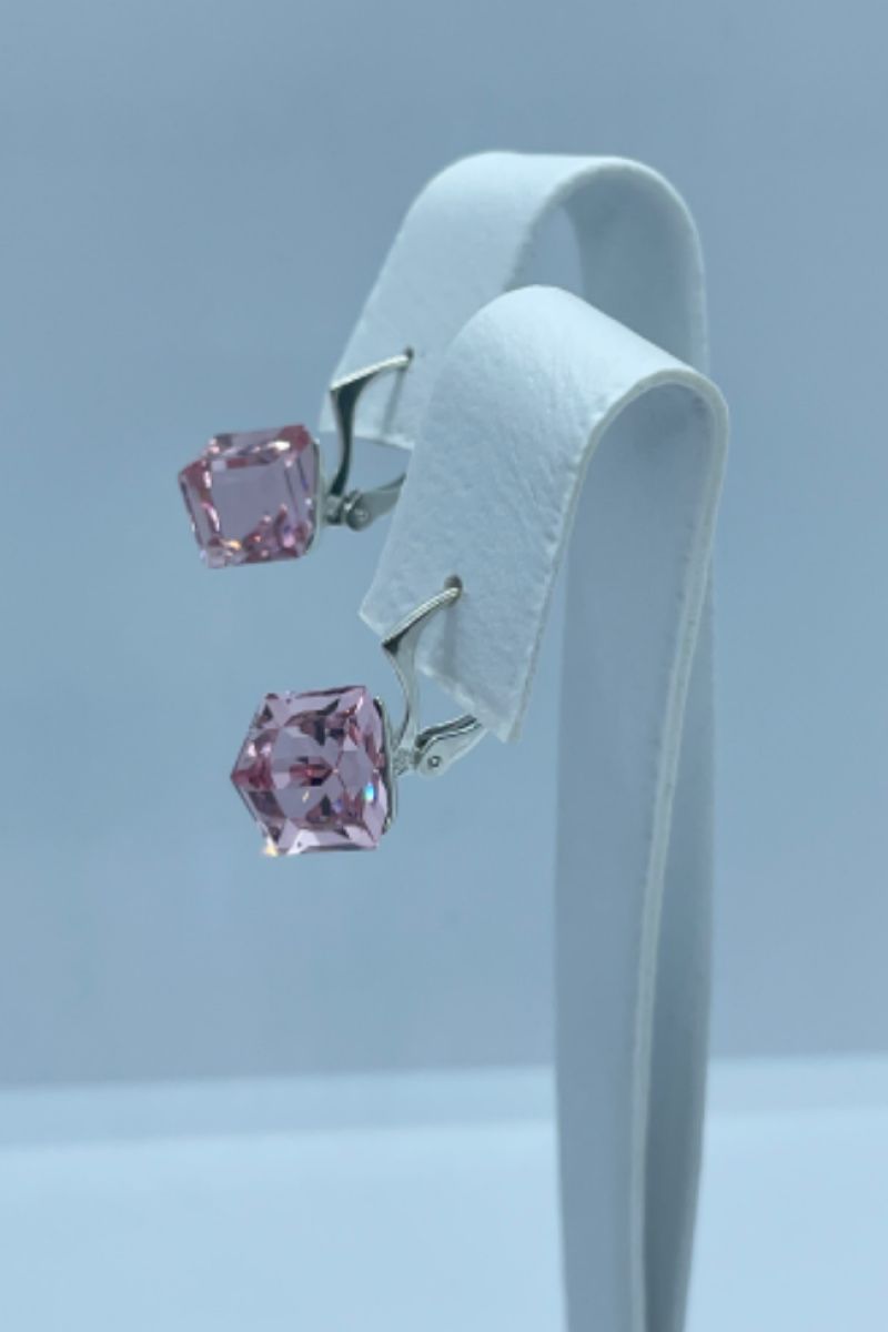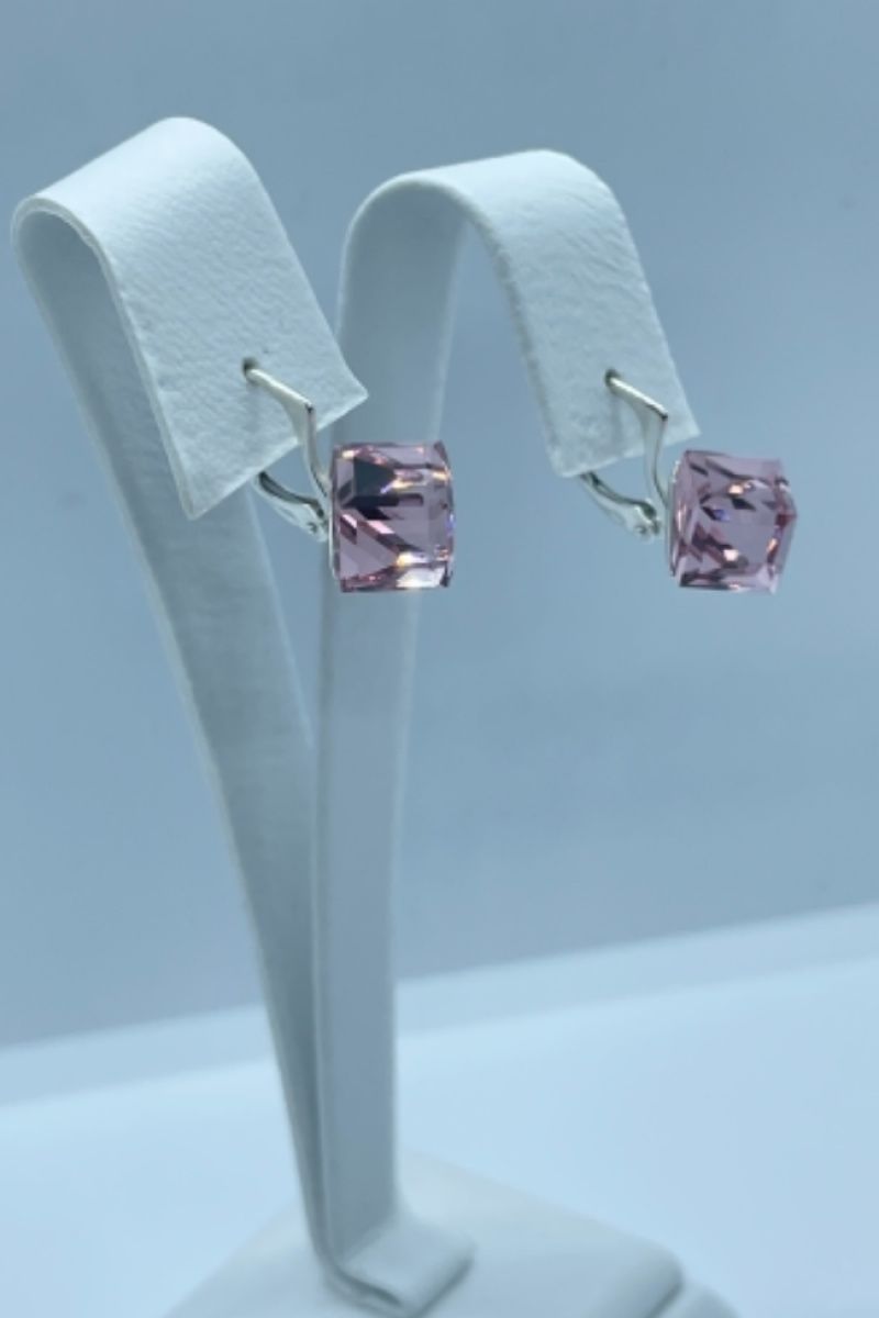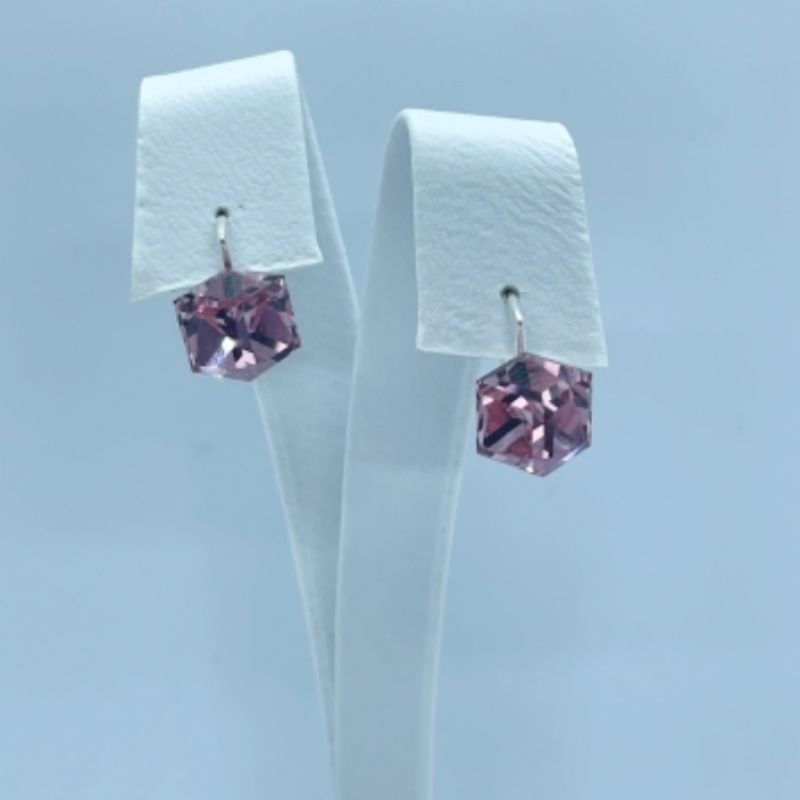 Серебряные серьги в форме Куба Кристаллы Св @ ровск, серия Angel cub Размер 8 мм, цвет Light rose Серебро 925, родий