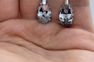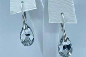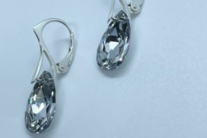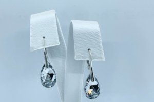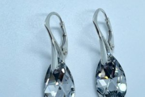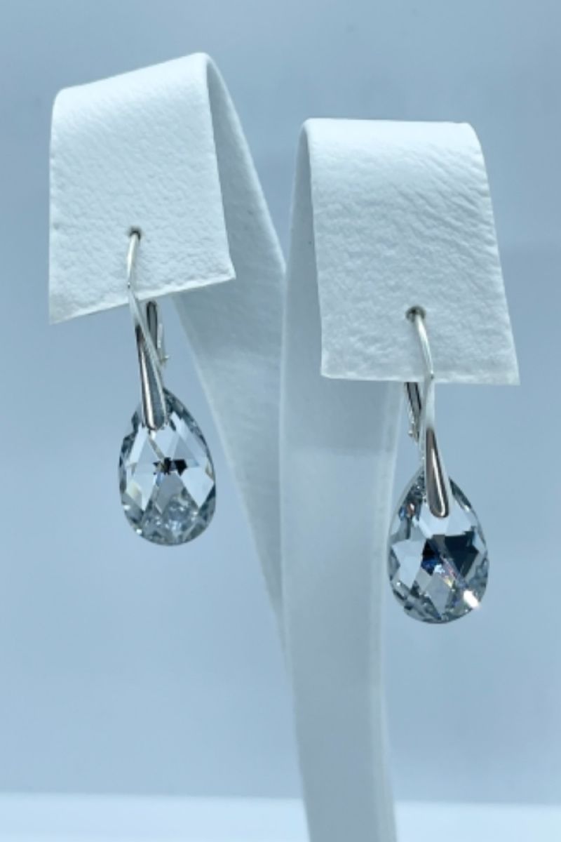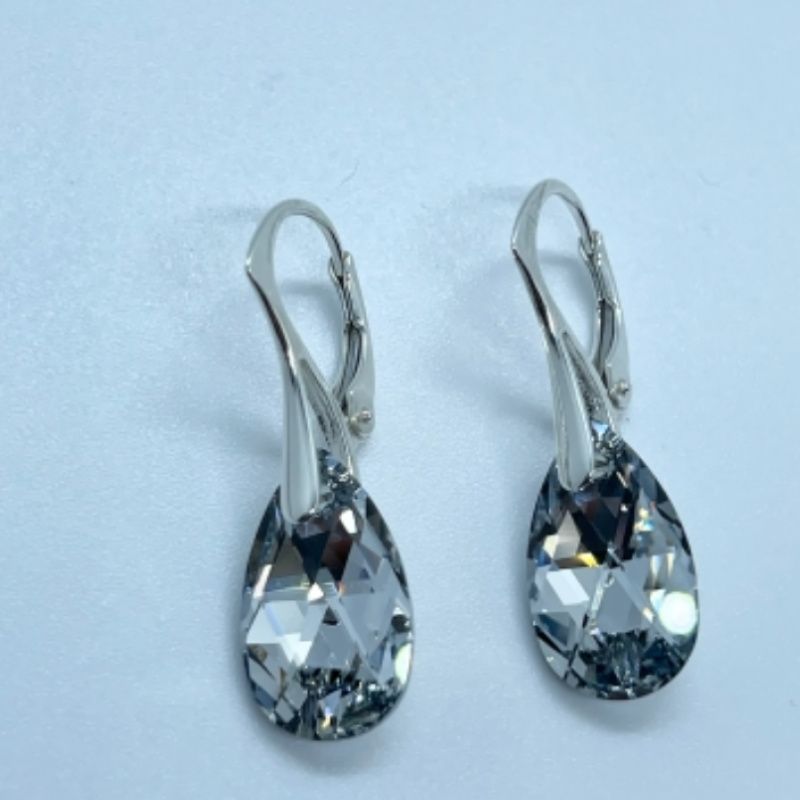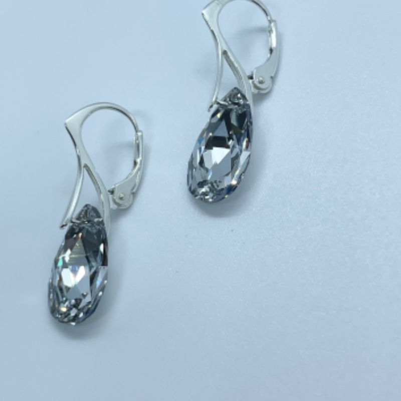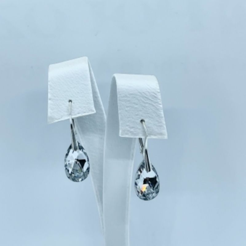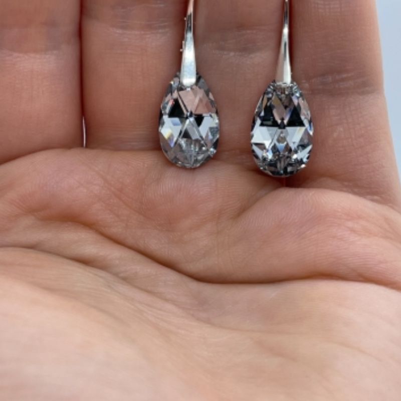 Серебряные серьги с камнями Св @ ровск. Фурнитура высокого качества. Кристаллы с последней коллекции бренда. Цвет Crystal «Слеза ангела»