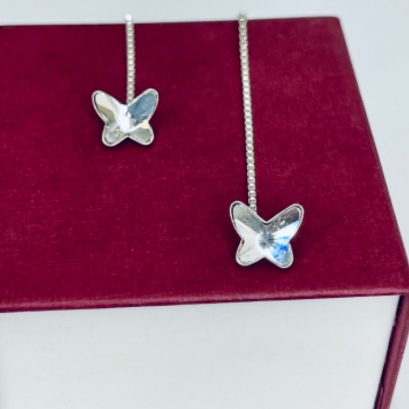 Очень красивые серьги - протяжки «Бабочки». Произведенные из серебра (Чехия), украшенные кристаллом Св @ ровского, хорошо фиксируются на ухе.