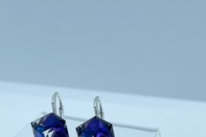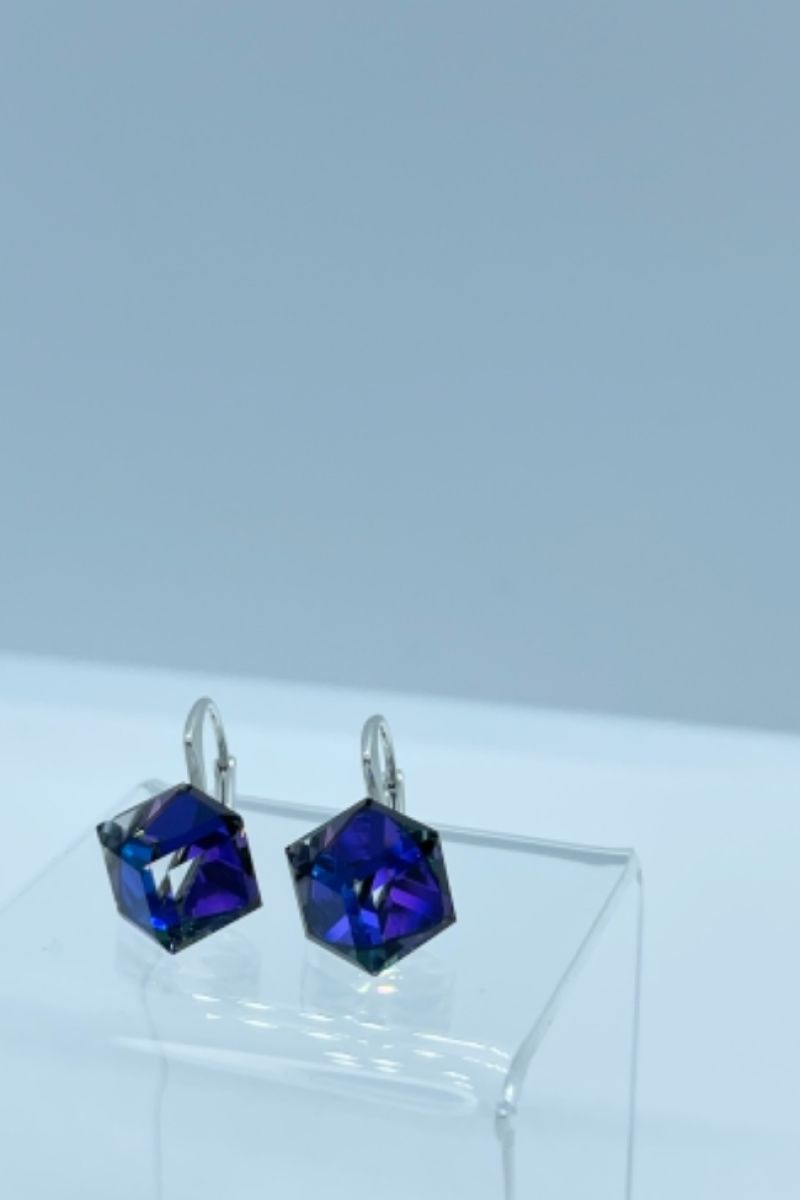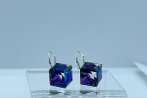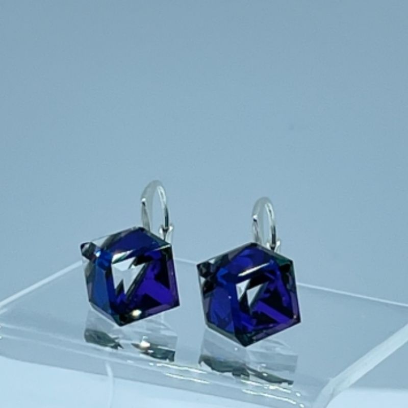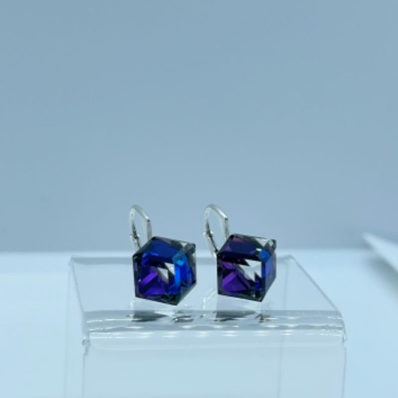 Серебряные серьги Кубы Сваровски, Цвет кристаллов Heliotrope, размер 8/8 мм, Серебро 925, родий.