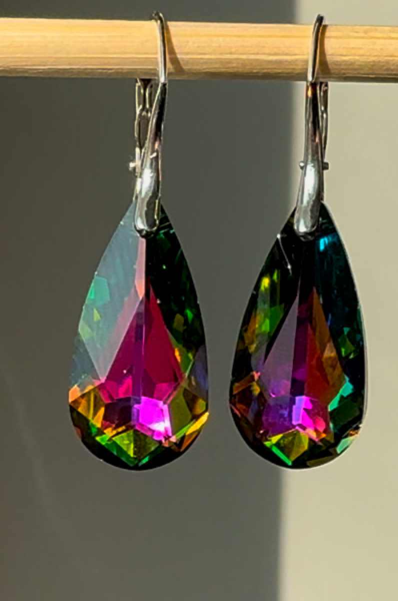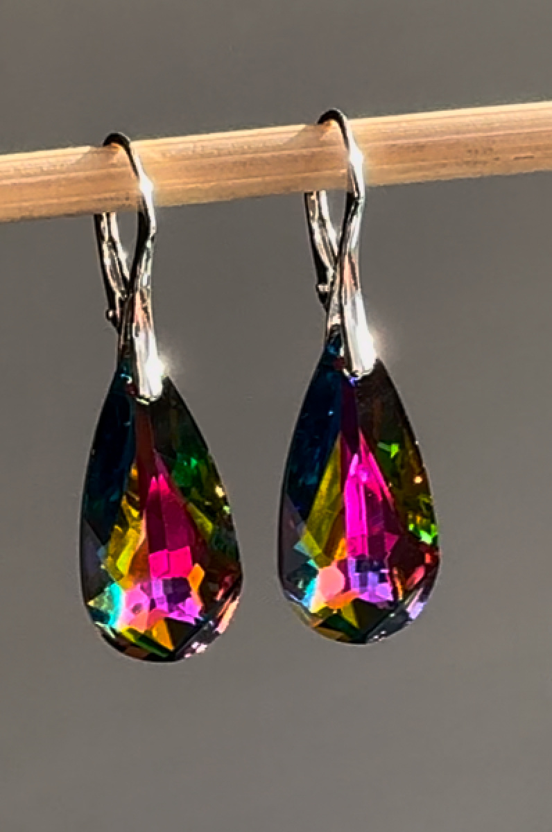 Серебряные серьги в виде капли, выполненные в цвете Rose CAL. Оригинальные кристаллы Сваровски. Размер кристалла 22 мм, Английский застежка.