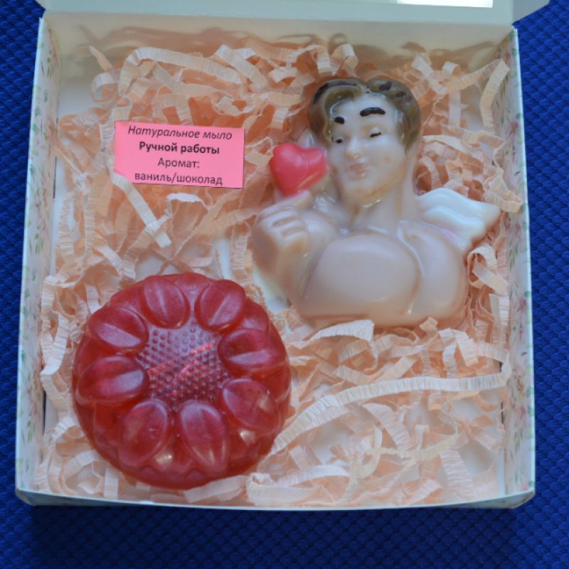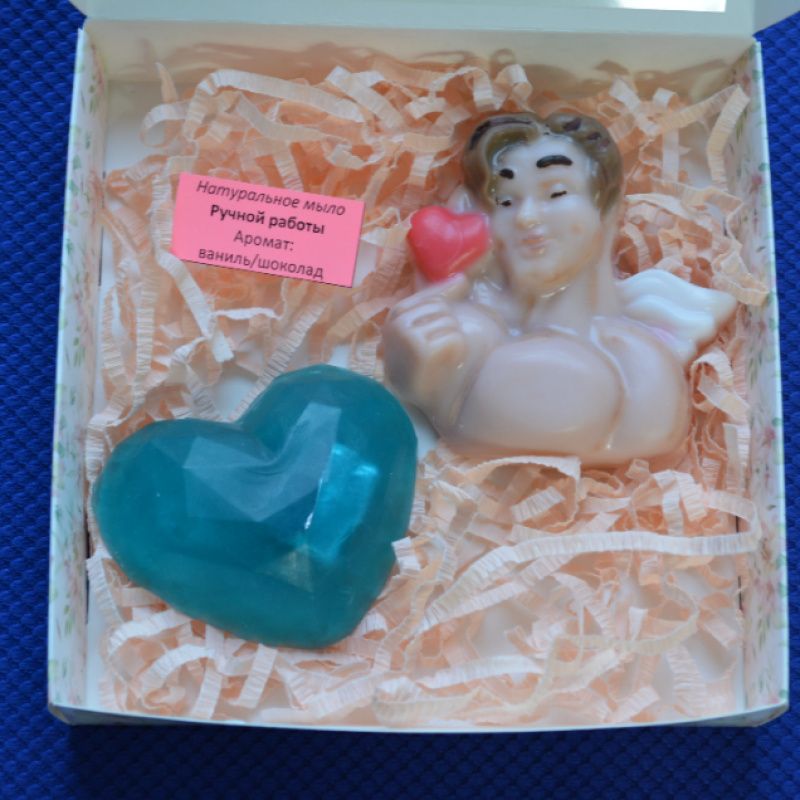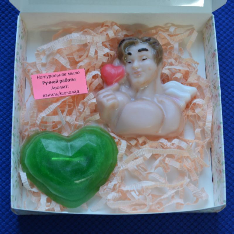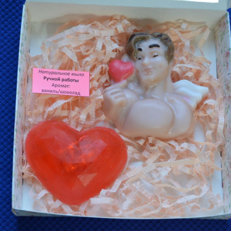 Вес набора 100 гр. Натуральный состав масло абрикосовой косточки, аромат шоколад- ваниль. Так же в мыле сердечко спрятано пожелание внутри.