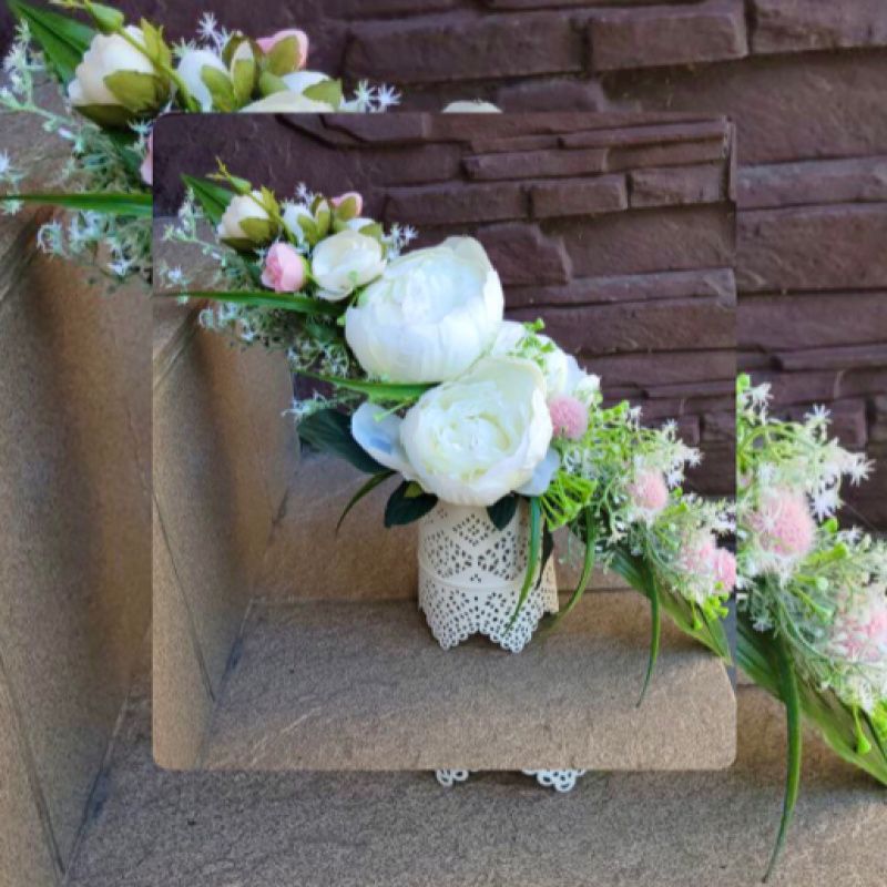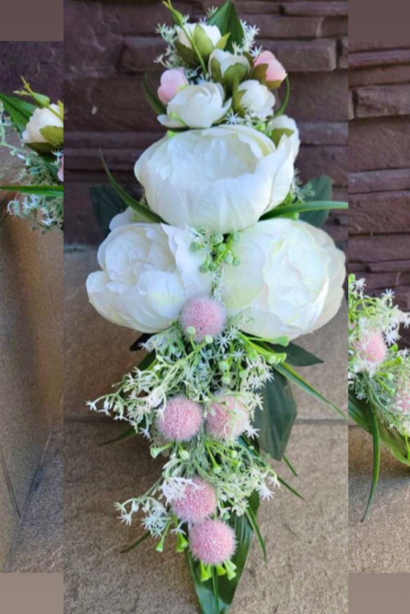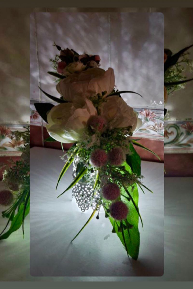 Ніжна композиція з білими піонами, легко перетворюється в нічничок!( в середині кашпо LED свічка-таблетка