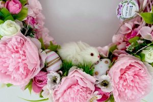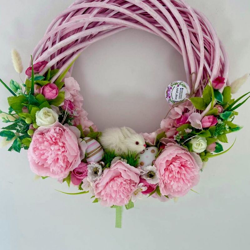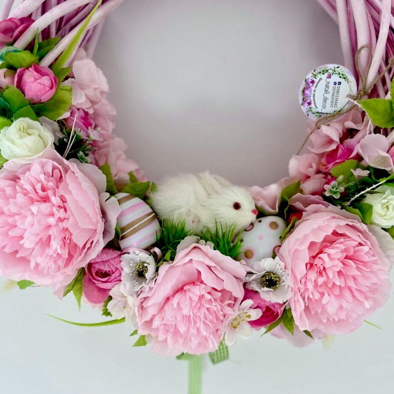 Хочу С Вами поделиться розовым венчиком из новой коллекции, невероятной нежности! Основа из лозы, пушистый зайчик, тканевые цветы лучшего качества и снизу салатовый бантик.