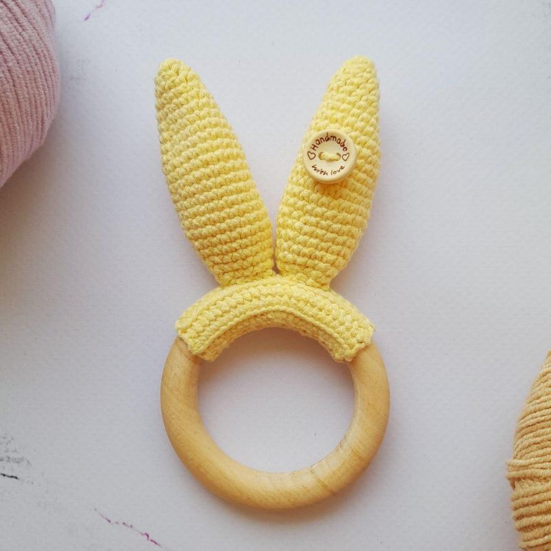 Это обвязанное кольцо березы, которое в игрушке играет роль грызунка для детей. Кольцо отлично шлифованное, гладкое, безопасное. А над кольцом связаны и виднеются ушки зайчика. Внутрь я положила тихую шелестку. Сжимая ушки, ребенок будет слышать приятный шуршащий звук. Беру заказ. Выполнение до 2 дней, если ваши цвета есть в наличии. Грызунок Шуршалочка 'Зайки Вушка' - 100% ручная работа. - Высота 12,5 см с ушками - Внутри ушек шелеста. - Пуговку-бирку снять перед использованием. Цвет пряжи можно выбрать по вашему вкусу. Пишите в директ.