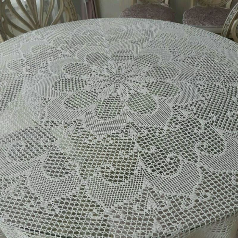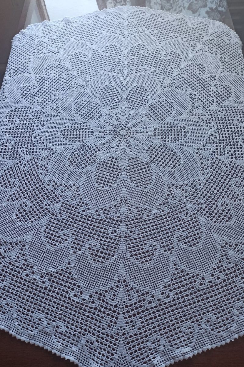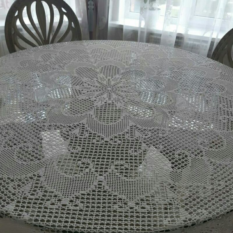 СКАТЕРТЬ СВЯЗАНА КРЮЧКОМ ИЗ МЕРСЕРИЗИРОВАННОГО ХЛОПКА. ДИАМЕТР - 2 М.