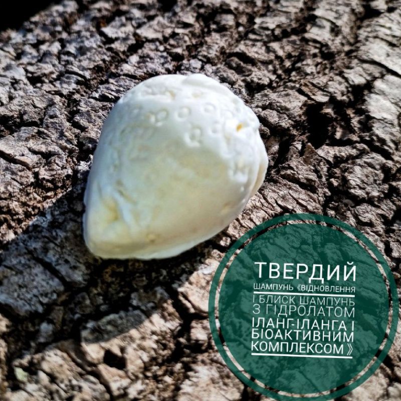 Твердый шампунь Восстановление и блеск с гидролатом Иланг-Иланга Натуральная цветочная вода Иланг-Иланга – очень мягкий продукт который придает волосам блеск и шелковистость, препятствует выпадению волос. Состав :натуральное поверхностно-активное вещество Кокосульфат натрия ,кокоил изэтионат натрия гидролат Иланг-Иланга, нерафинированное Оливковое масло ,Кокосовое масло ,Амодиметикон.