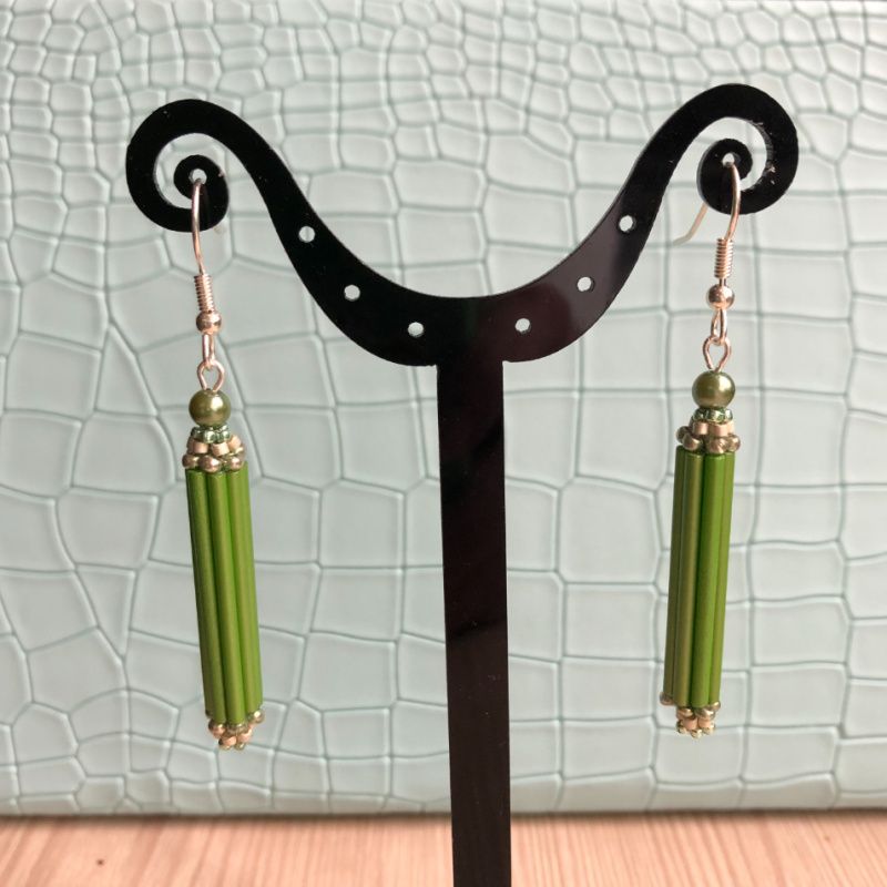 Серьги нежного салатового цвета, как молоденькие ростки, распускающиеся весной. Элегантные, близкие к классике подвески. Фурнитура покрыта родием (гипоаллергенная). Бисер четырех различных производителей! Стеклярус производства Италии, бисер китайский, японский, жемчужинки Чехия! Очень интернациональный набир