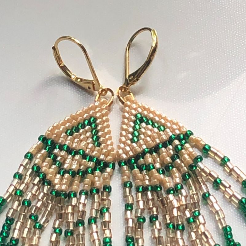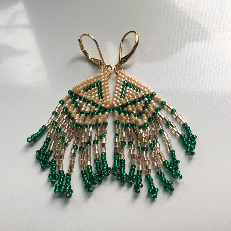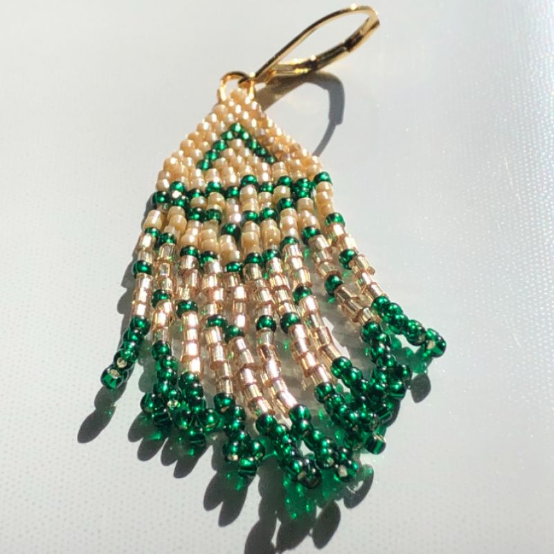 Серьги из бисера в стиле бохо. Для создания моих изделий я преимущественно использую Японский бисер. в "Изумрудном свете" я использовала сочетание цилиндрической Delica с рубкой Matsuno. Завершила изделие фурнитурой производства Кореи, покрытой золотом 18К. Такие серьги носятся легко, не вызывают аллергии даже у чувствительных к металлам ушек и держатся крепко благодаря надежным крючок.