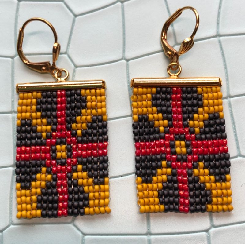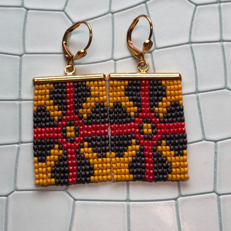 Серьги из бисера серого и желтого цвета. Красный цвет - яркий акцент. Созданные по мотивам Карппиських вышитых орнаментов. Основные цвета признаны цветами 2021, поэтому вы сможете уверенно носить их и с повседневной одеждой и к этническому. Качественный японский бисер, фурнитура производства Кореи, позолочены.