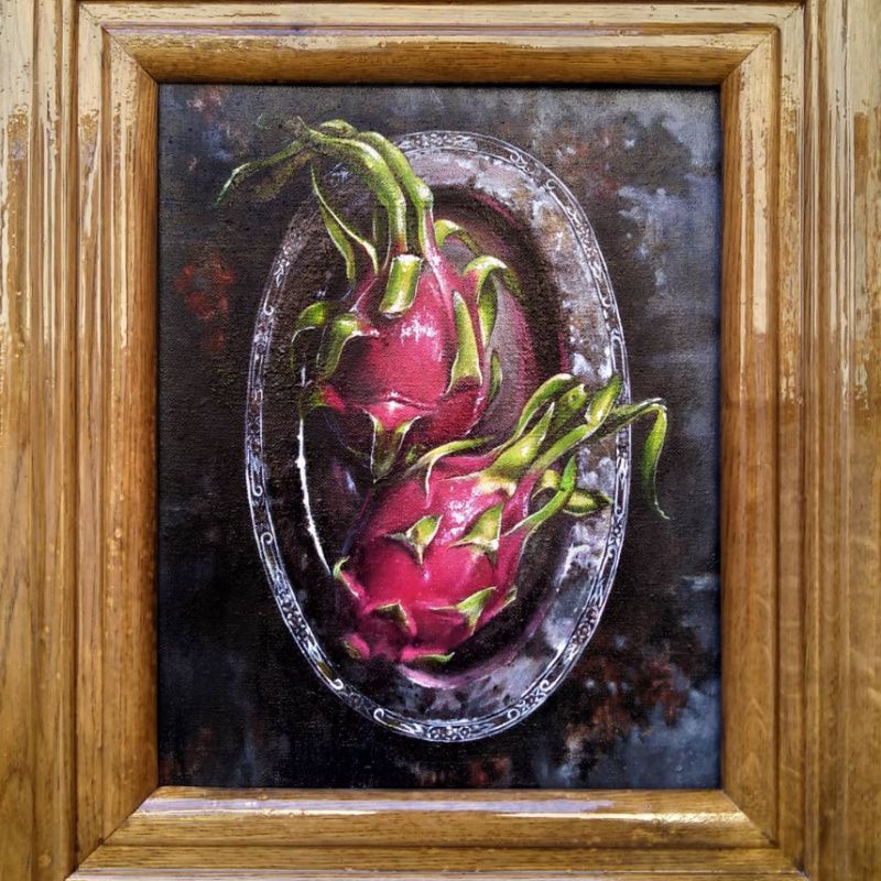 Натюрморт выполнен на холсте, масляными красками, продается с деревьев * яной рамкой.