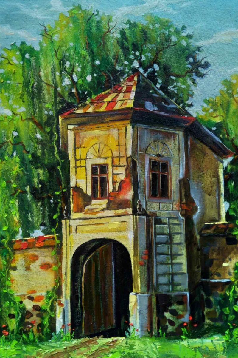 Картина выполнена масляными красками на холсте, во Дворце-крепость графов Телеки в с. Долгое, на картине изображена одна из башен дворца. Размер 40х50 см. Продается без рамки.