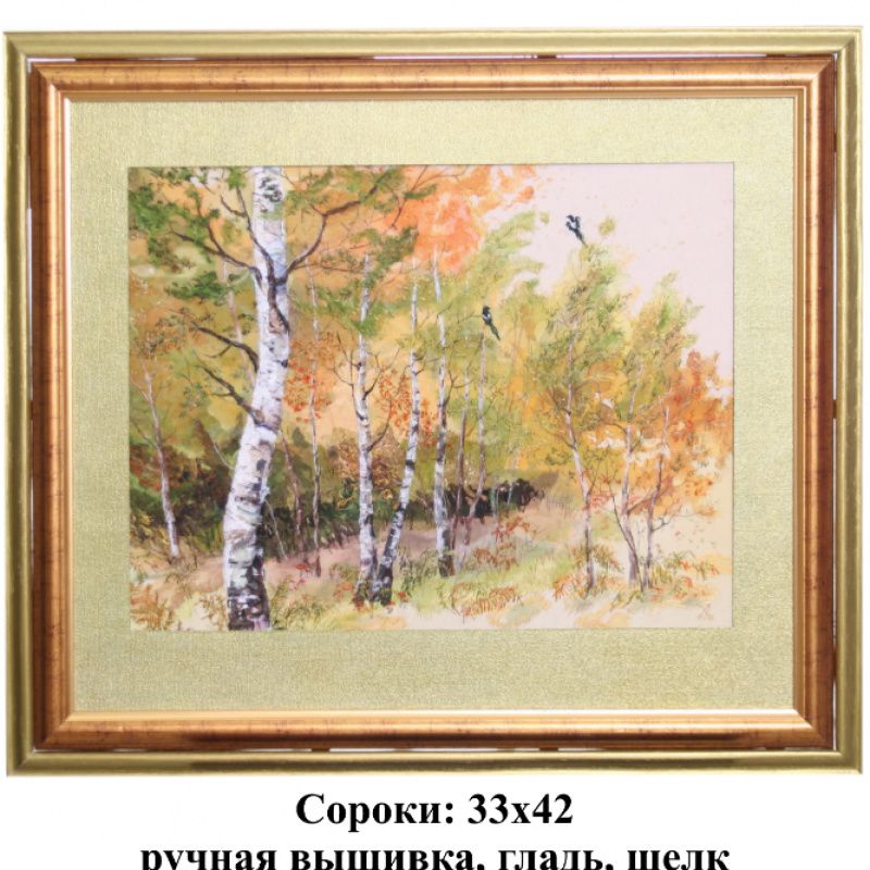Нити которыми вышита катрина шелковые. Рама деревянная с напылением акриловой краски золотого и зелёного цвета.