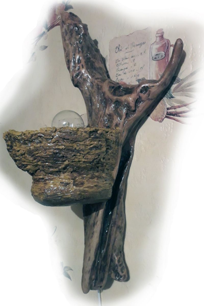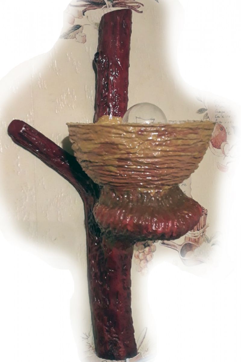 Светильник настенный ручной работы в одном экземпляре. 22 см на 45 см. Основа – натуральное дерево. Гнездо – ручная лепка. Лампочка 220 V.- заменяется обычным порядком. Приму заказ на эксклюзив. Контакт (фото и т.п.)- вайбер.