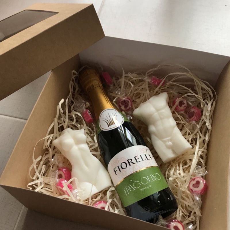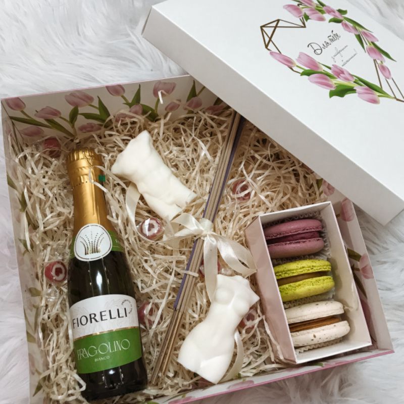 Мини набор: свечи ручной работы и шампанское - 349 грн Большой набор: свечи ручной работы, шампанское, макаруны, аромапалочки - 549 грн.