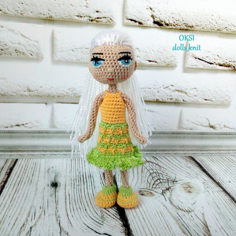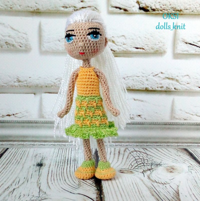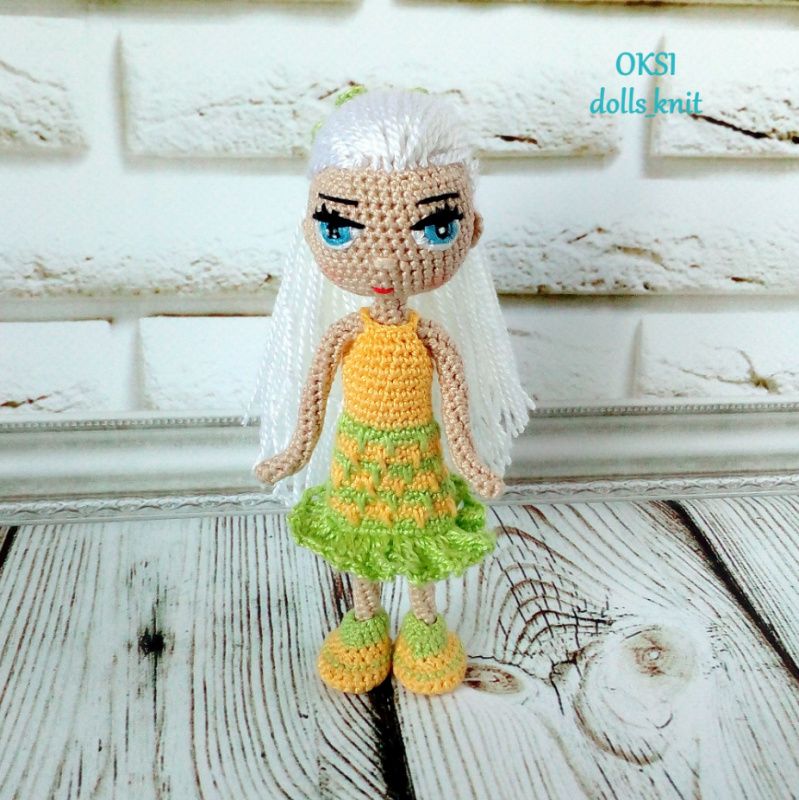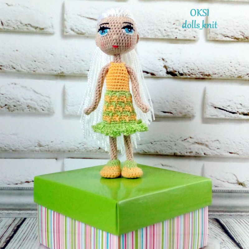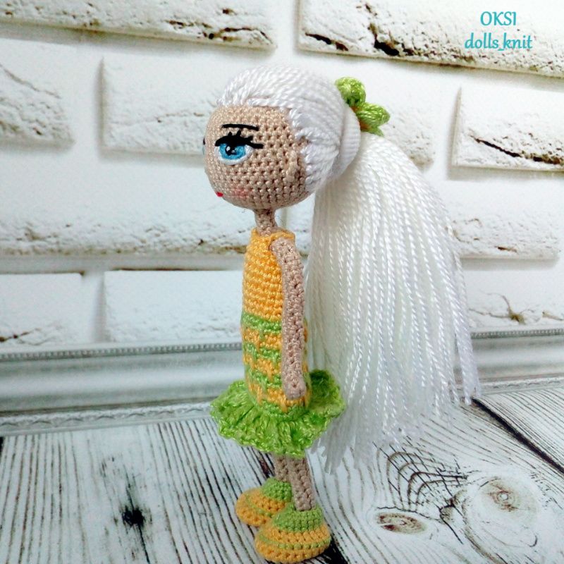 Куколка Ксюша, полностью на каркасе, туфельки снимаются, стоит самостоятельно, набита холофайбером, ниточки 100 хлопок, волосы - акрил, высота 11 см.