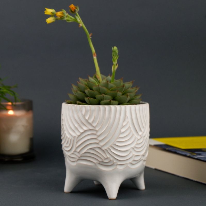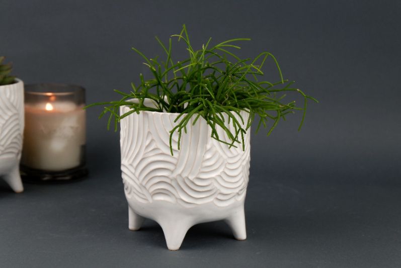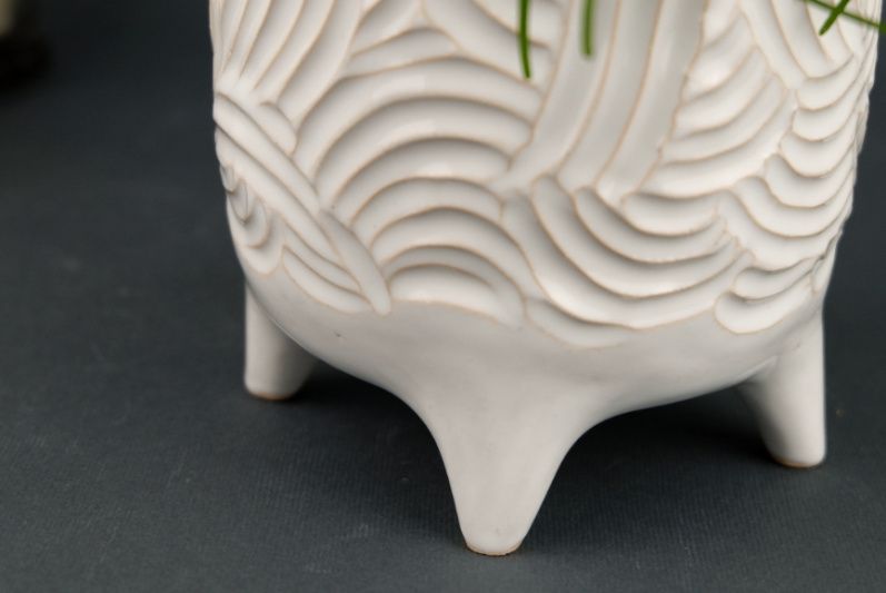 Изготавливаю керамику для тепла и комфорта в вашем доме. Керамические горшки для ваших любимых растений, например кактусов, суккулентов, фиалок или других. Горшки на четырех стойких ножках, выполненные в белом цвете. Изготовлены на гончарном круге, все рельефы сделаны инструментом вручную. Вы можете выбрать горшок с дренажным отверстием и без. Также можно использовать в качестве стакана или пиала. Материал: гончарная масса, пищевые поливы. Размеры: высота 11см; ширина 10см. Но это ручная работа и размеры могут отличаться, поэтому вы можете написать мне для уточнения. Если вам понравилась форма и цвет изделия, но не совсем подходит размер, могу выполнить для вас на заказ по вашим параметрам.