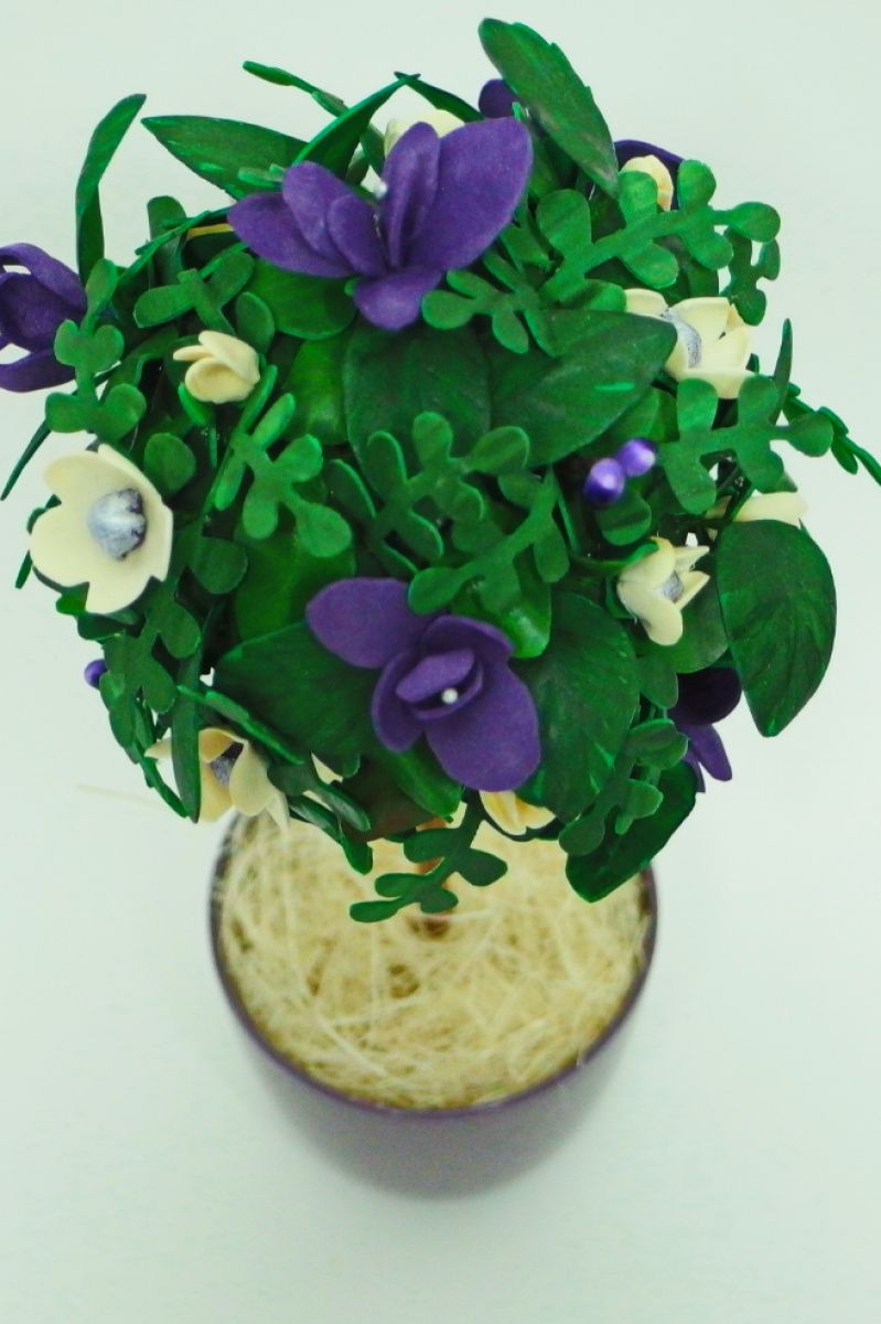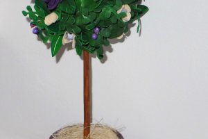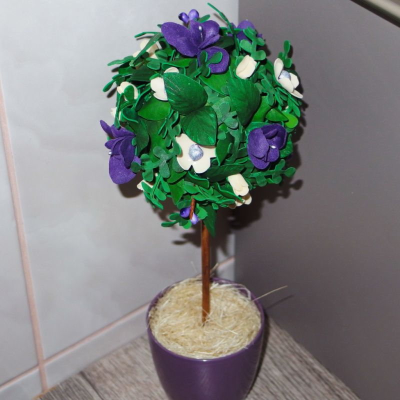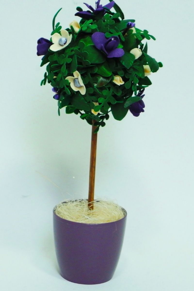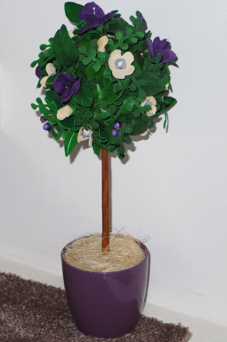 Вам хочется украсить свой дом вазонами, но не хватает времени заниматься уходом за ними, тогда декоративное дерево – то что вам нужно. Ведь оно не нуждается в уходе и прекрасно украсит любой домашний интерьер или создаст уютную атмосферу в офисном помещении. Декоративное дерево – отличный подарок для вас и ваших родных. Листья и цветы изготовлены вручную из фоамирана и выглядят как живые. Дерево стоит в пластиковом кашпо. Высота 26 см диаметр кроны 10 см. Вес 200 гр.